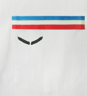 ポケットにあしらった箱学の3本ラインは、シャツに馴染むよう細いラインで表現。