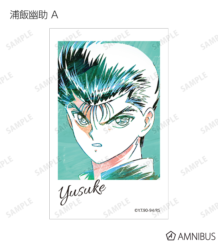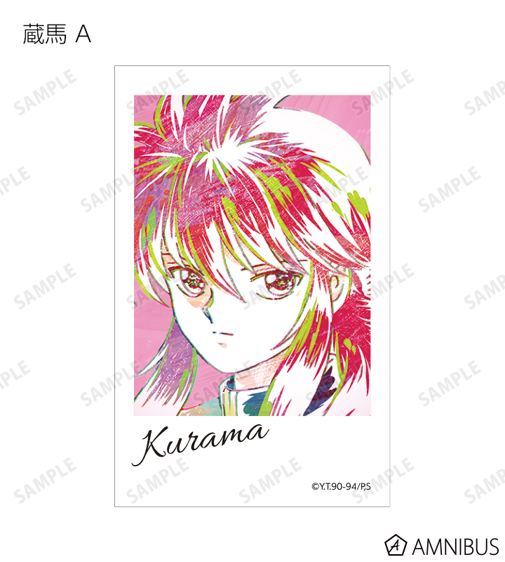浦飯幽助、桑原和真、飛影、蔵馬、妖狐蔵馬、幻海、雷禅、軀、黄泉、コエンマ、仙水忍、樹、刃霧要のイラストを新たなタッチで魅力的に表現し、インスタントカメラ風のイラストカードに仕上げました。