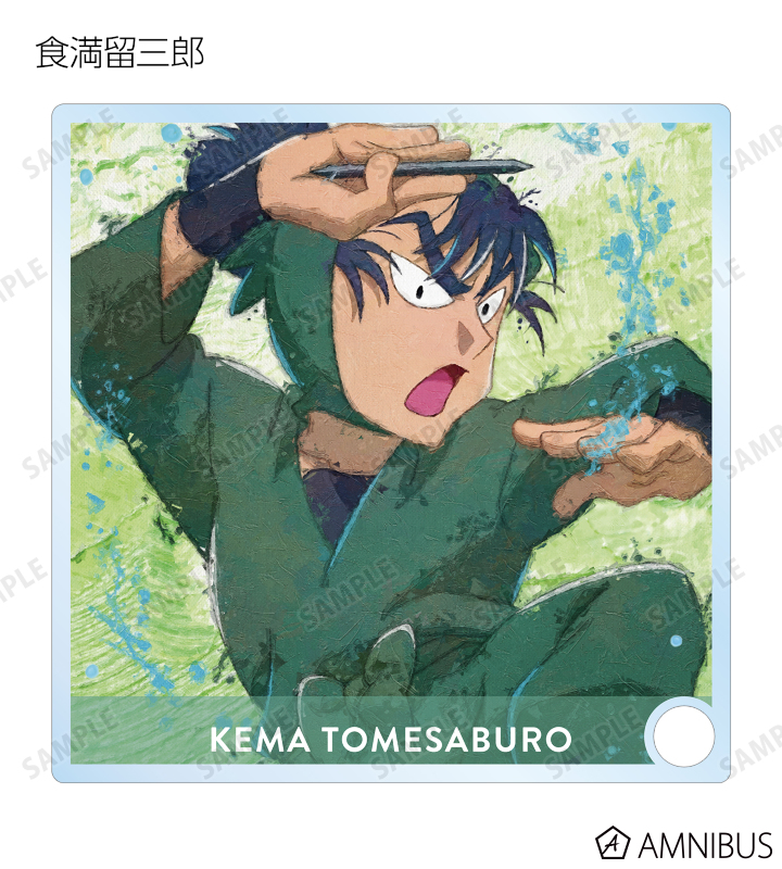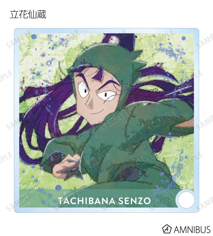 福富しんべヱ、土井半助、田村三木ヱ門、斉藤タカ丸、浜守一郎、竹谷八左ヱ門、不破雷蔵、立花仙蔵、食満留三郎、善法寺伊作、鬼蜘蛛丸、義丸のイラストを新たなタッチで魅力的に表現し、手のひらサイズのアクリルパネルに仕上げました。