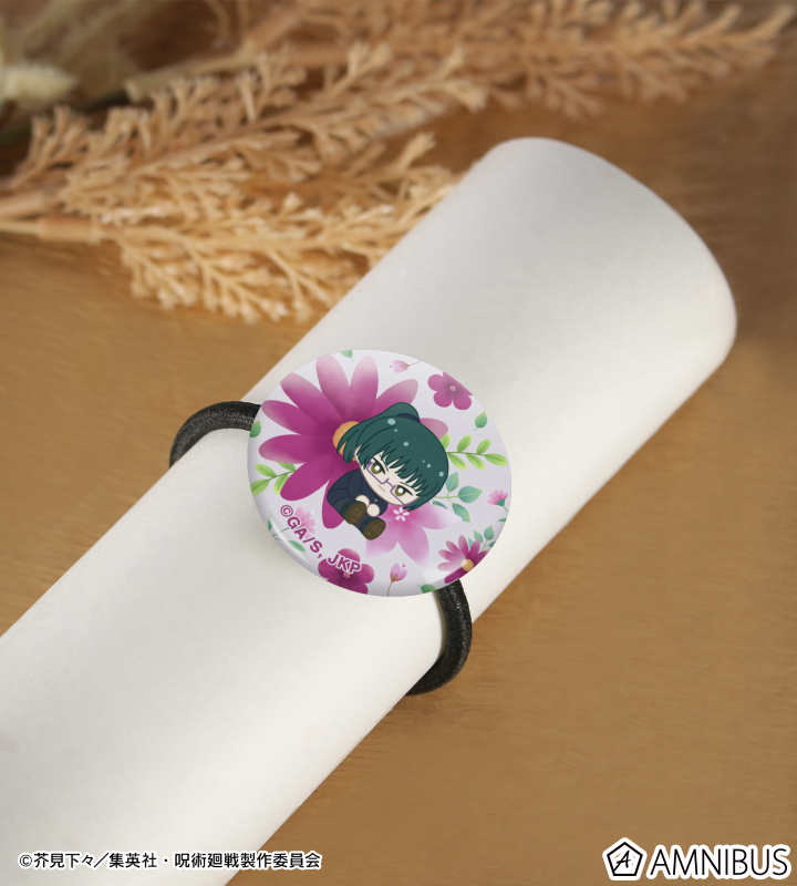 禪院真希のイラストをボタニカルデザインに落とし込んで繊細なタッチで新たに描き起こし、ガラスヘアゴムに仕上げました。