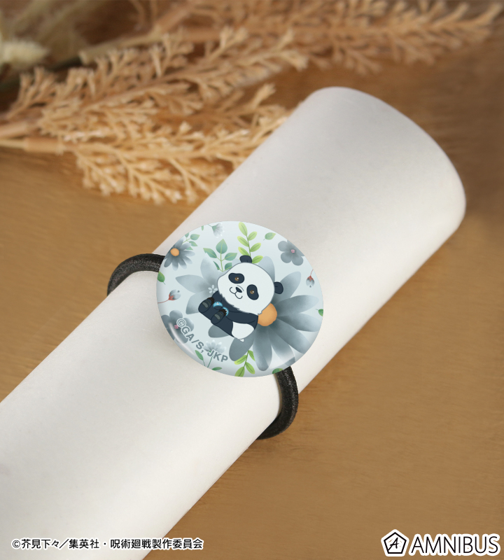 パンダのイラストをボタニカルデザインに落とし込んで繊細なタッチで新たに描き起こし、ガラスヘアゴムに仕上げました。