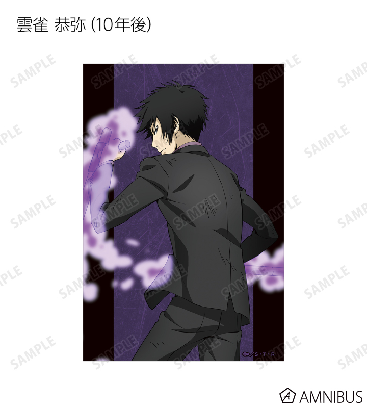 沢田 綱吉、リボーン、獄寺 隼人(10年後)、山本 武(10年後)、雲雀 恭弥(10年後)、六道 骸(10年後)、XANXUS(10年後)、スペルビ・スクアーロ(10年後)の描き下ろしイラストをクリアカードに仕上げました。