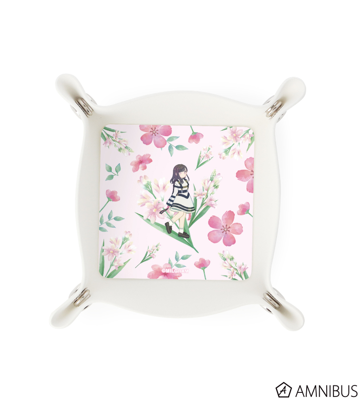 ユノのイラスト、キャラクターの誕生花をボタニカルデザインに落とし込んで繊細なタッチで新たに描き起こし、PUレザーマルチトレーに仕上げました。