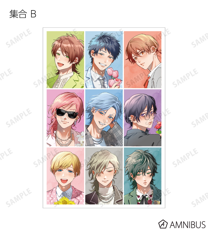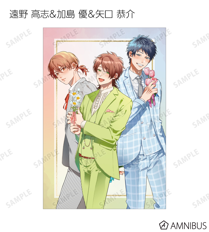 おげれつたなか先生描き下ろしイラストの遠野 高志、加島 優、矢口 恭介、百合 絢斗、田村 唯、鹿谷 樹、明美 圭一、糸目 幸士郎、藤咲 透をポストカードに仕上げました。