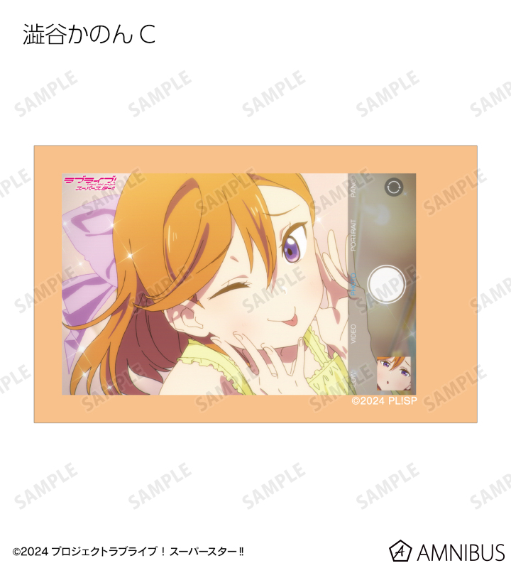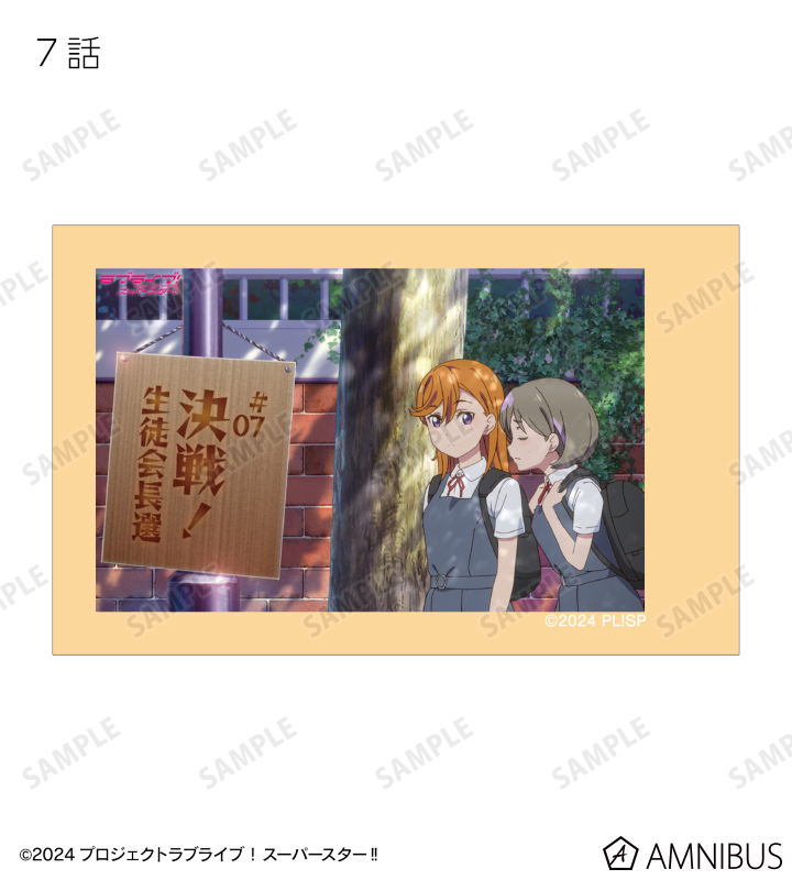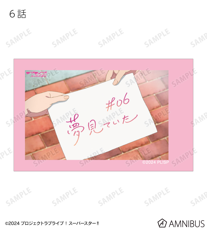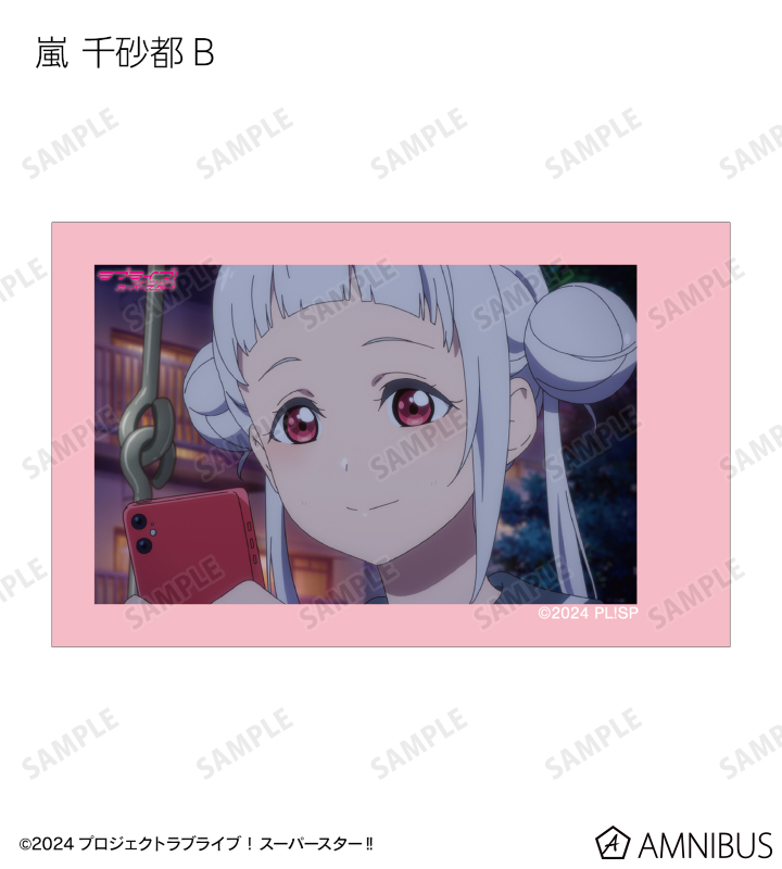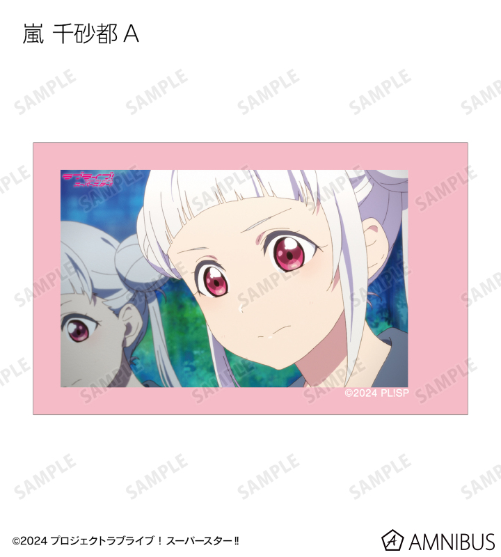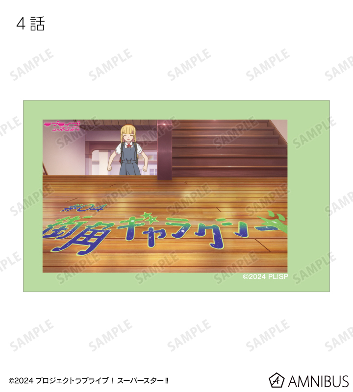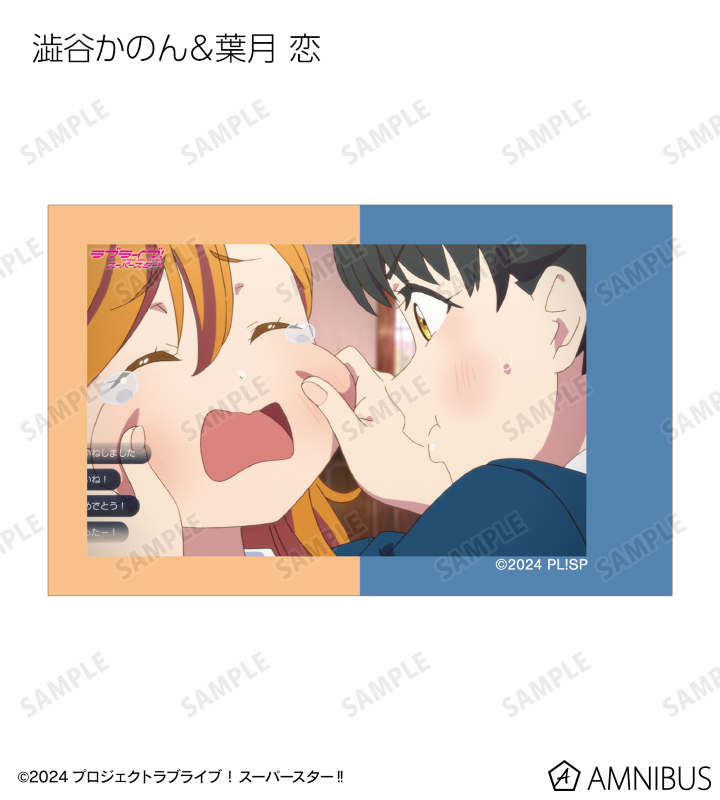 澁谷かのん、唐 可可、嵐 千砂都、平安名すみれ、葉月 恋のイラスト、1話、2話、3話、4話、5話、6話、7話、8話、9話、10話、11話、12話の印象的なシーンをインスタントカメラ風のイラストカードに仕上げました。