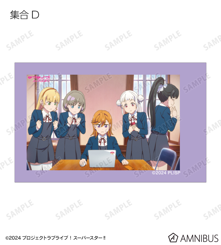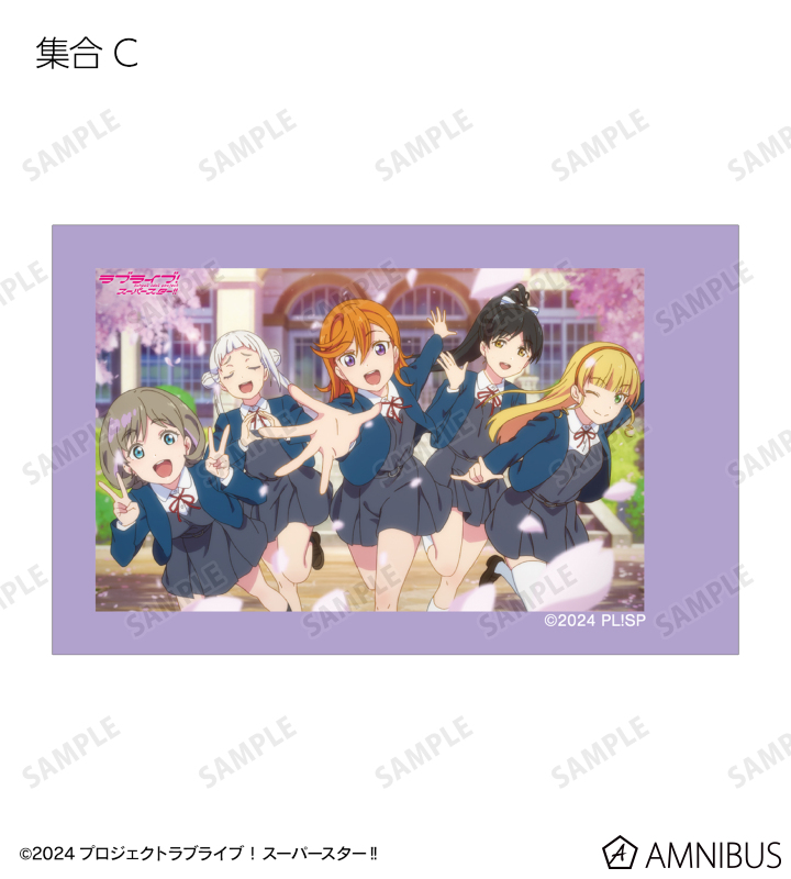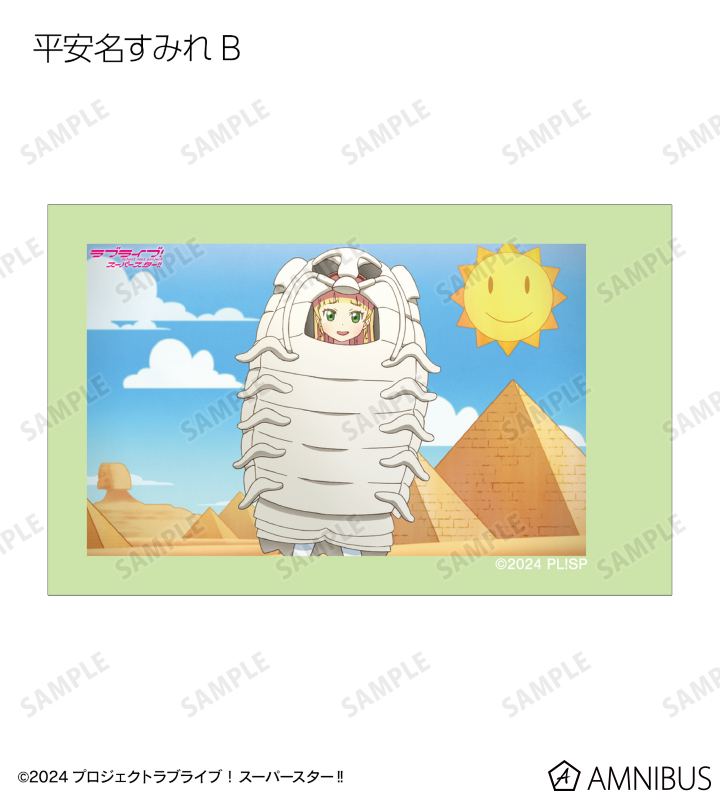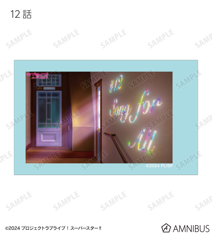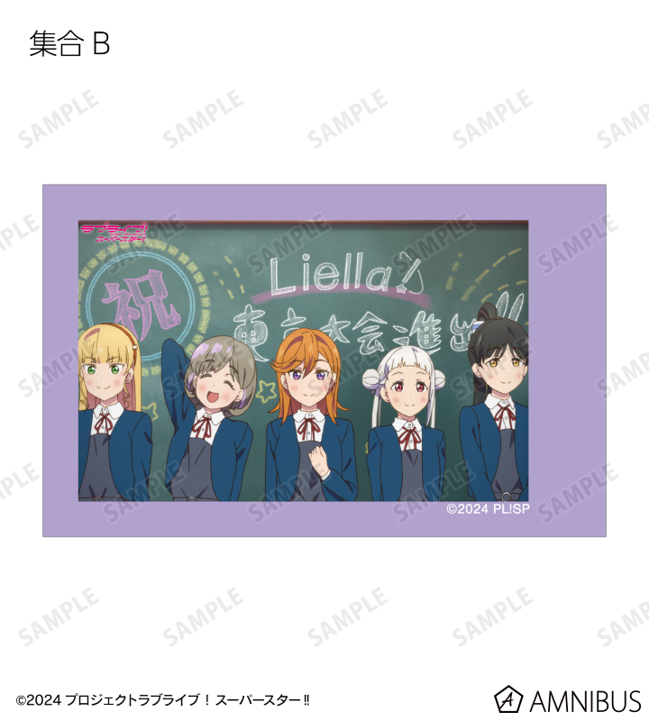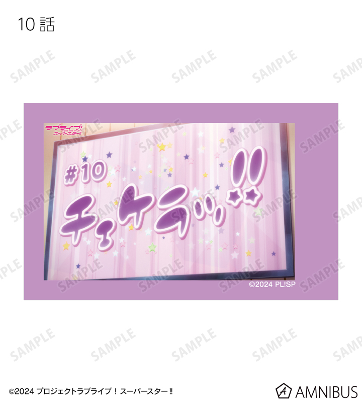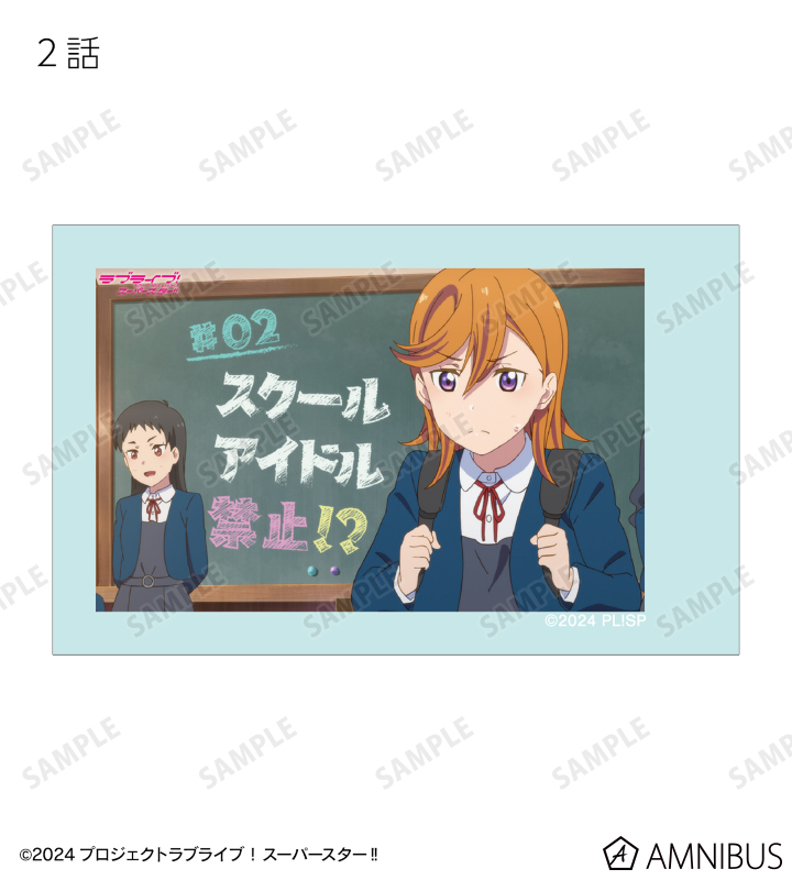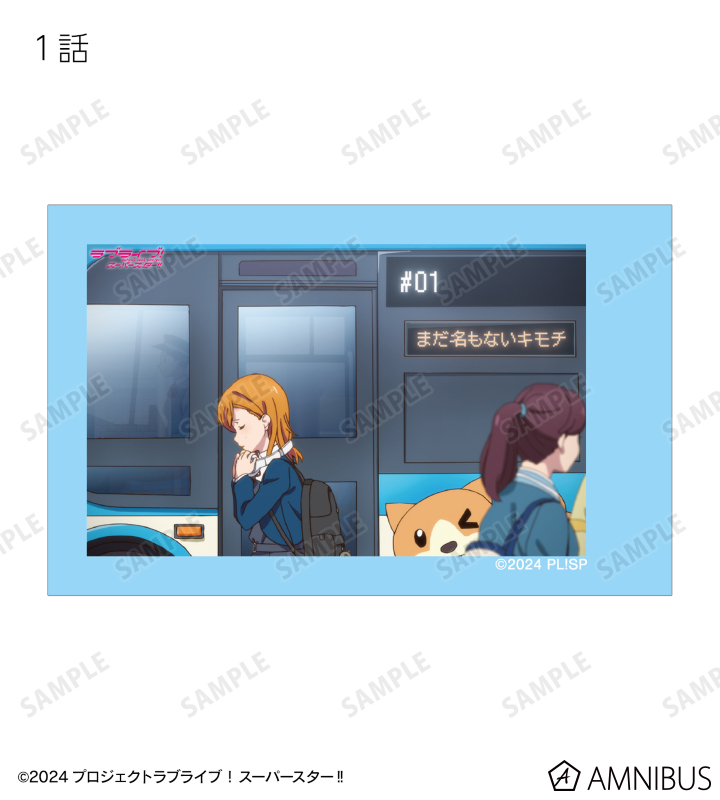 澁谷かのん、唐 可可、嵐 千砂都、平安名すみれ、葉月 恋のイラスト、1話、2話、3話、4話、5話、6話、7話、8話、9話、10話、11話、12話の印象的なシーンをインスタントカメラ風のイラストカードに仕上げました。