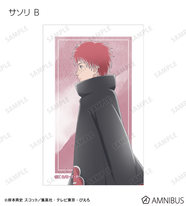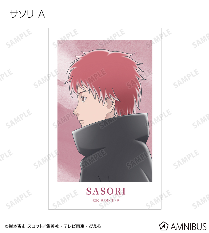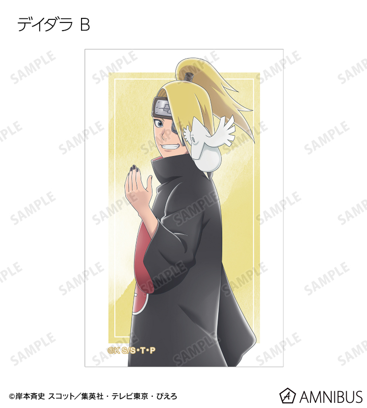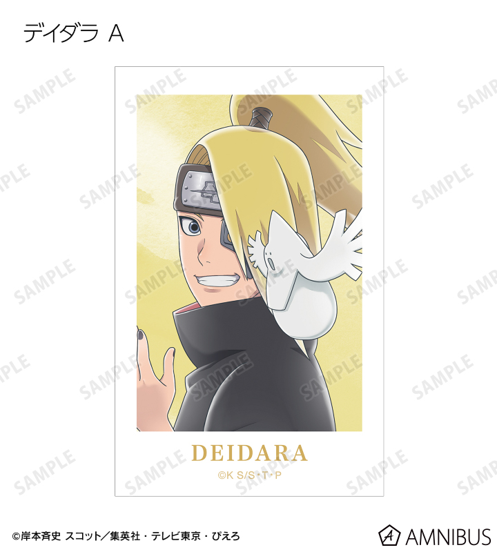うずまきナルト、うちはサスケ、はたけカカシ、うちはイタチ、デイダラ、サソリの描き下ろしイラストをイラストカードに仕上げました。