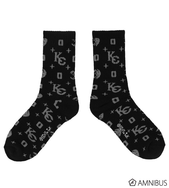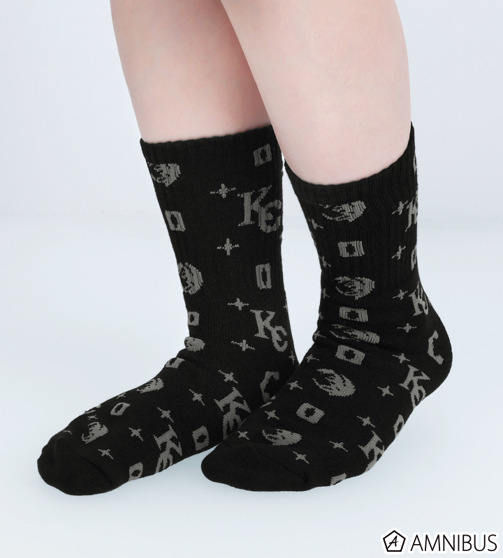 海馬コーポレーションのロゴやブルーアイズ・ホワイト・ドラゴンをレイアウトし、モノグラム風のデザインを靴下に仕上げました。