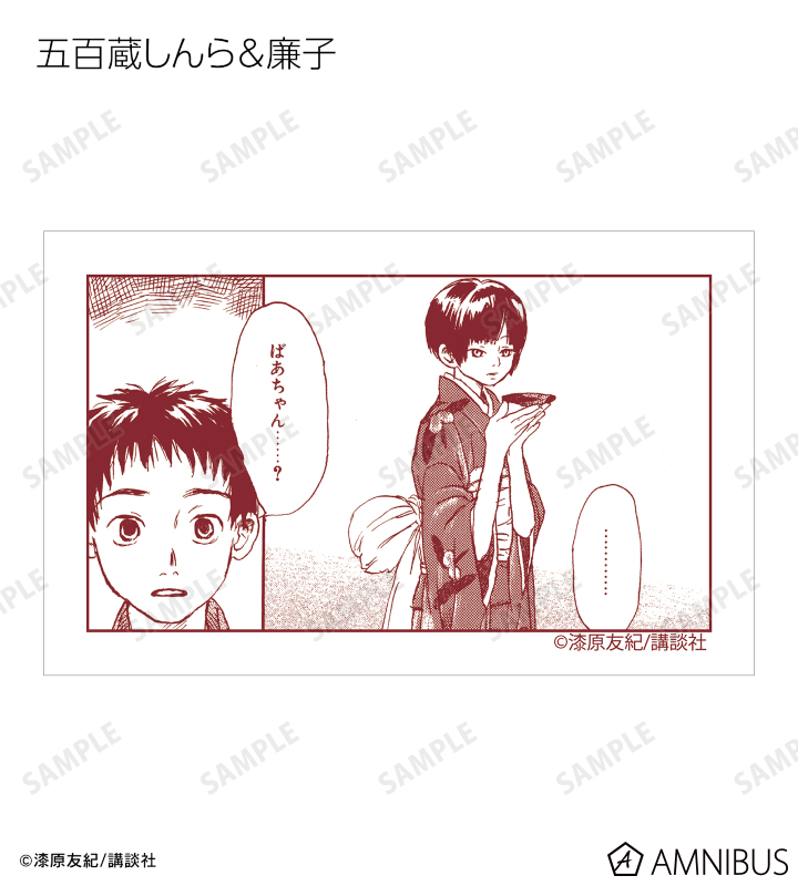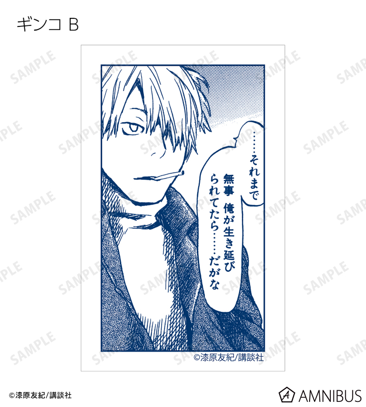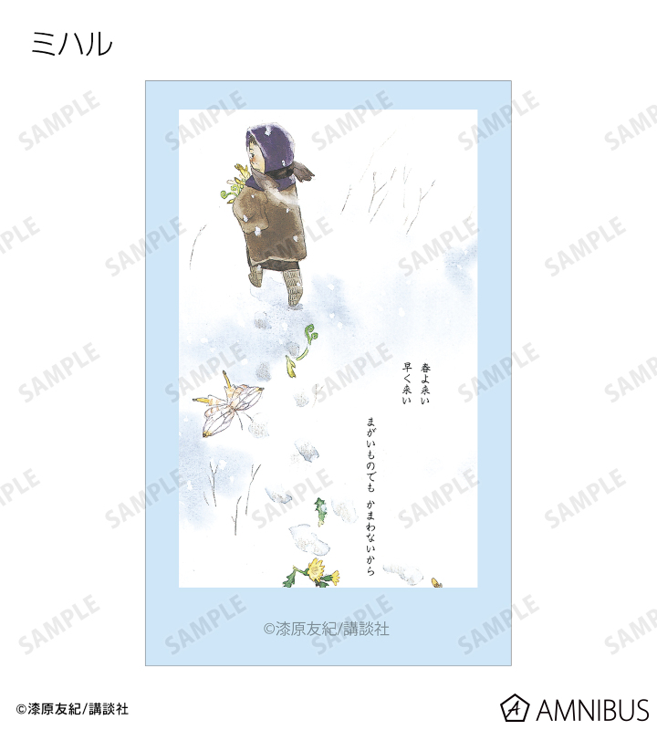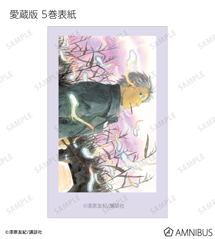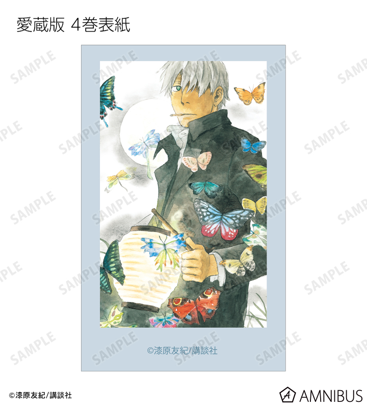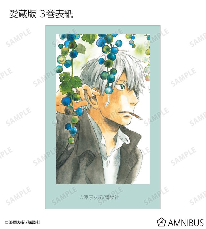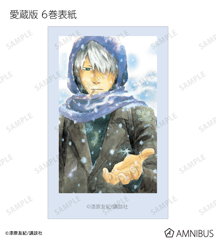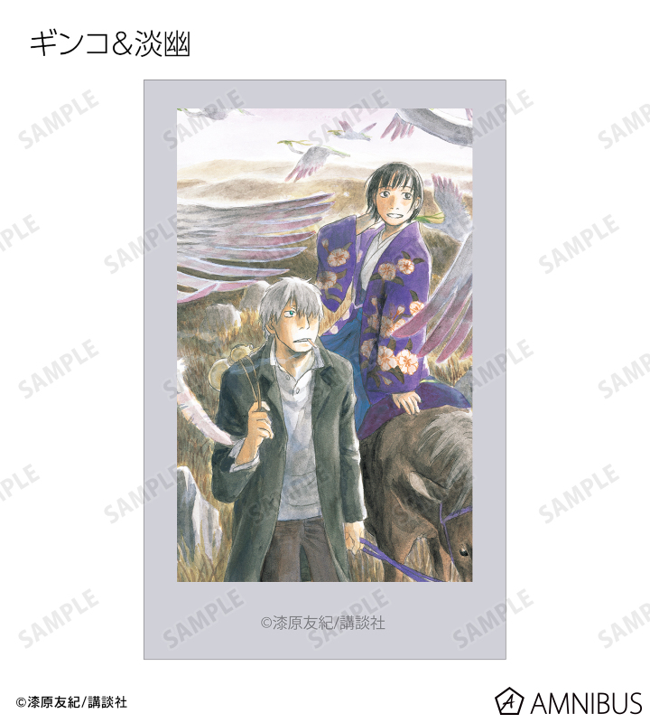 愛蔵版 1巻表紙、愛蔵版 2巻表紙、愛蔵版 3巻表紙、愛蔵版 4巻表紙、愛蔵版 5巻表紙、愛蔵版 6巻表紙、愛蔵版 7巻表紙、愛蔵版 8巻表紙、愛蔵版 9巻表紙、愛蔵版 10巻表紙イラスト、ギンコ、淡幽、ミハルの原作イラスト、ギンコ、五百蔵しんら、廉子、ビキ、スイ、いお、淡幽、あこやの原作コマイラストをインスタントカメラ風のイラストカードに仕上げました。