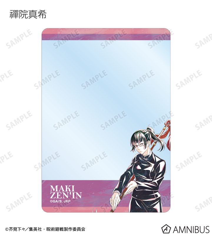 虎杖悠仁、伏黒 恵、釘崎野薔薇、禪院真希、狗巻 棘、パンダ、東堂 葵のイラストを新たなタッチで魅力的に表現し、キャラクターカラーに合わせたB8サイズの硬質カードケースに仕上げました。