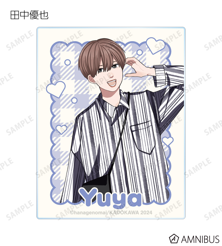 はなげのまい先生 描き下ろしイラストの高良瞬、天城太一、田中隼人、瀬川拓海、香取康介、山崎聡、柿本健、田中優也をアクリルカードに仕上げました。