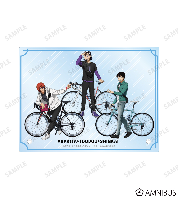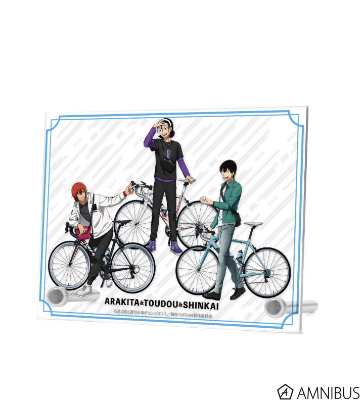 荒北 靖友、東堂 尽八、新開 隼人の描き下ろしイラストをA6サイズのアクリルパネルに仕上げました。