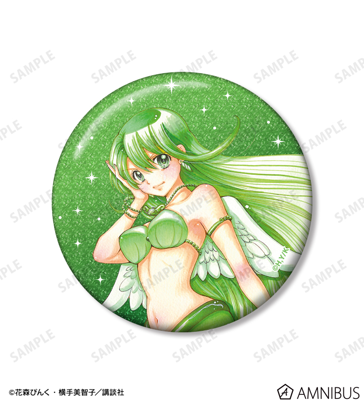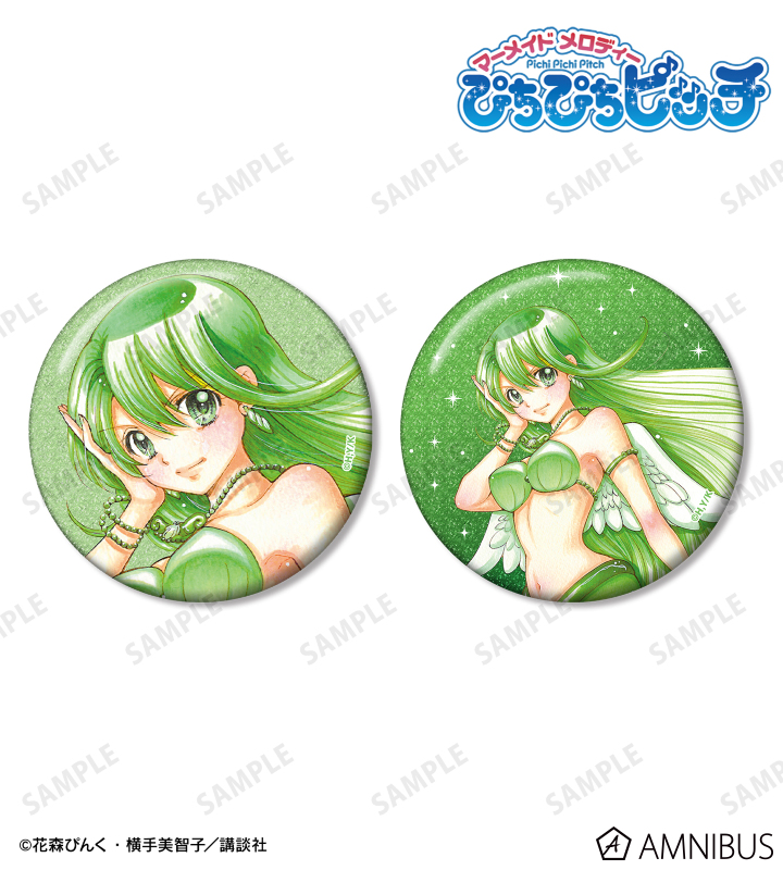 花森ぴんく先生 描き下ろし リナ 羽を纏ったマーメイドver. グリッター缶バッジ 2個セット