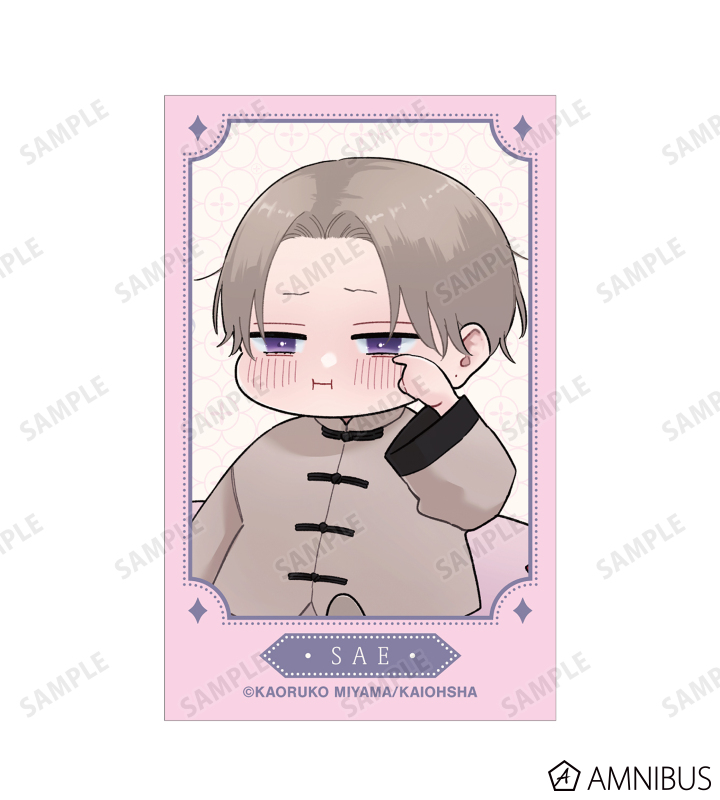 美山薫子先生描き下ろしちびキャライラストの高槻冴、久慈明仁をイラストカードに仕上げました。