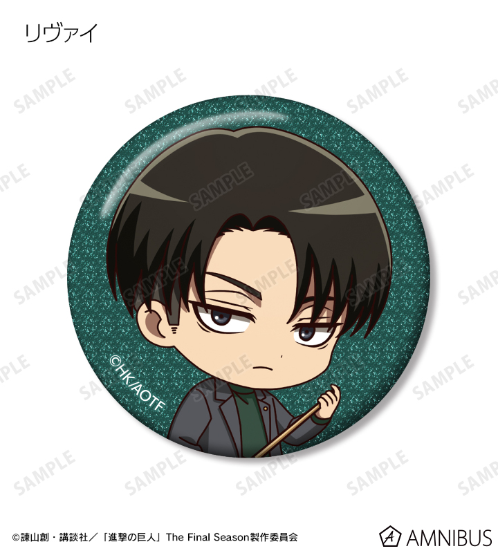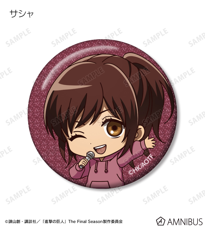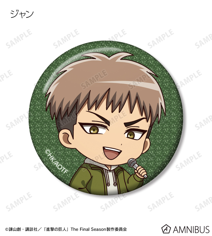 TVアニメ『進撃の巨人』×「ROUND1」のコラボレーションアイテム「トレーディング ちびキャラ アクティビティver. グリッター缶バッジ」の登場です。