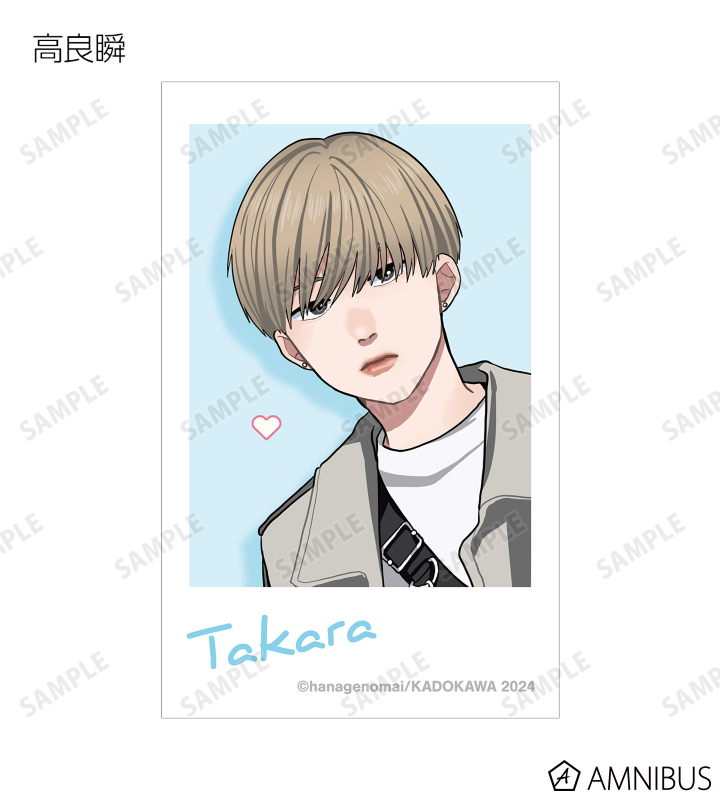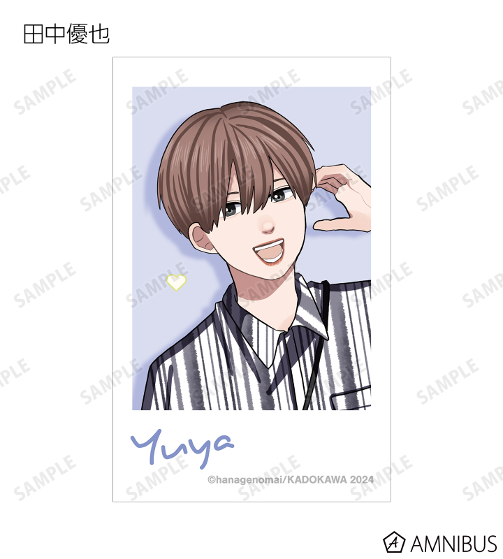 はなげのまい先生 描き下ろしイラストの高良瞬、天城太一、田中隼人、瀬川拓海、香取康介、山崎聡、柿本健、田中優也をインスタントカメラ風のイラストカードに仕上げました。