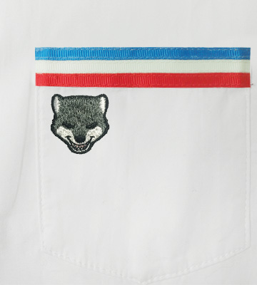 ポケットにあしらった箱学の3本ラインは、シャツに馴染むよう細いラインで表現。