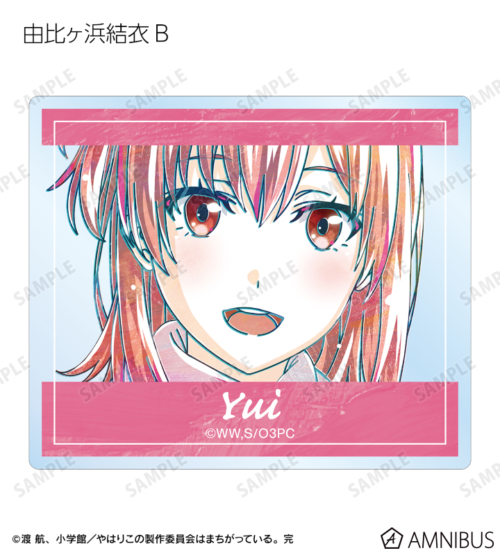 雪ノ下雪乃、由比ヶ浜結衣、一色いろは、比企谷小町、平塚 静のイラストを新たなタッチで魅力的に表現し、アクリルカードに仕上げました。