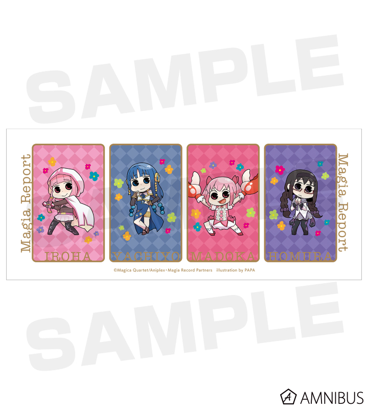 いろはちゃん、七海やちよ、まどか先輩 、暁美ほむらをフレーミングしたデザインを、それぞれキャラクターからイメージしたカラーリングで仕上げています。