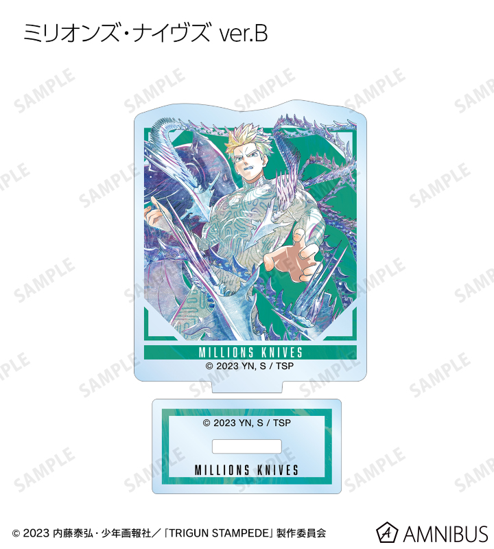 ヴァッシュ・ザ・スタンピード、ニコラス・D・ウルフウッド、ミリオンズ・ナイヴズのビジュアルを新たなタッチで魅力的に表現し、アクリルスタンドに仕上げました。
