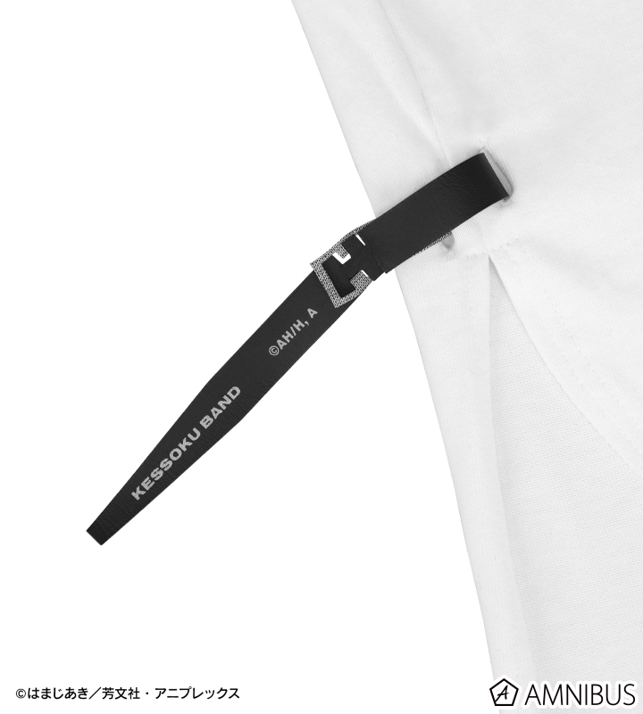 裾にも合皮製のバンドを取り付けており、ライブハウス「STARRY」を拠点としている、結束バンドのバンドグッズをイメージした商品として、細部にいたるまでこだわったTシャツとなります。