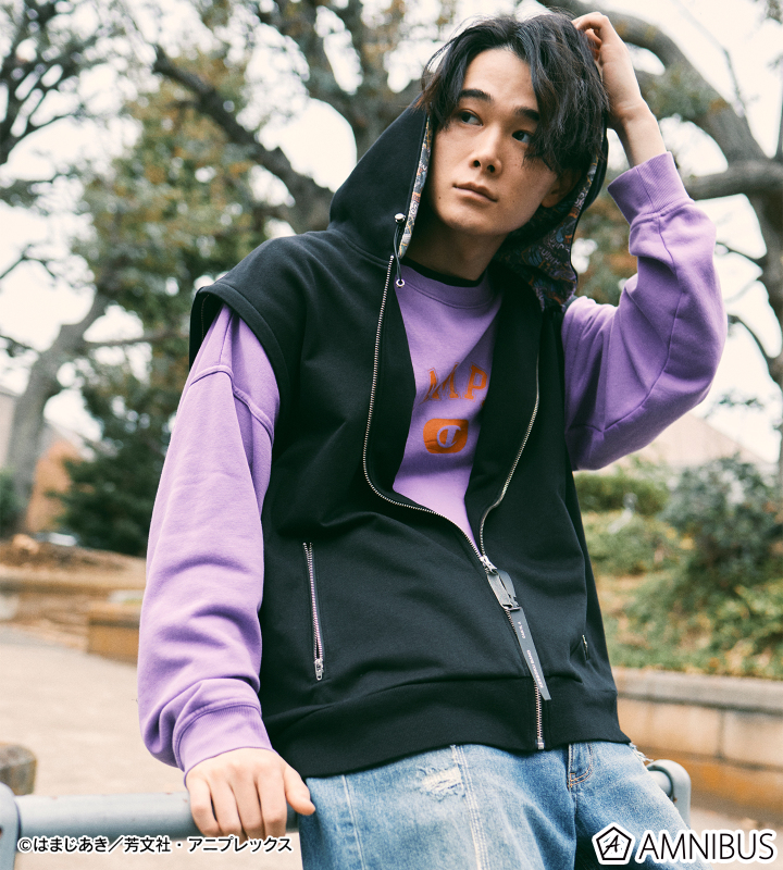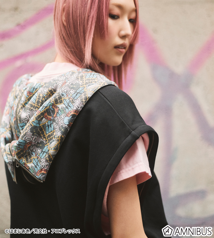 フードの裏地には結束バンドの各メンバーの楽器をデカール風デザインにして、ステッカーボムのようにあしらうことで、ストリート系ファッションのようなカジュアルなコーディネートを楽しむことが出来ます。