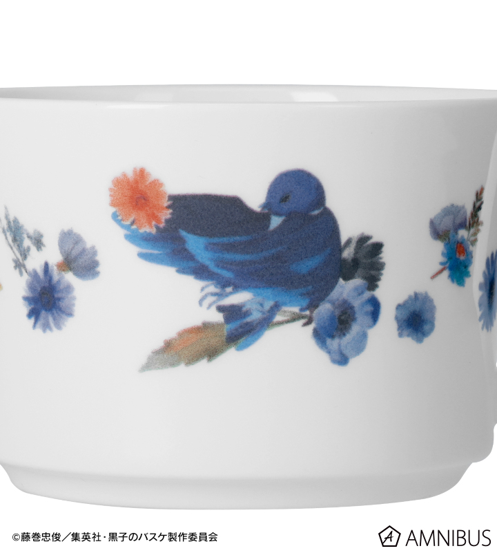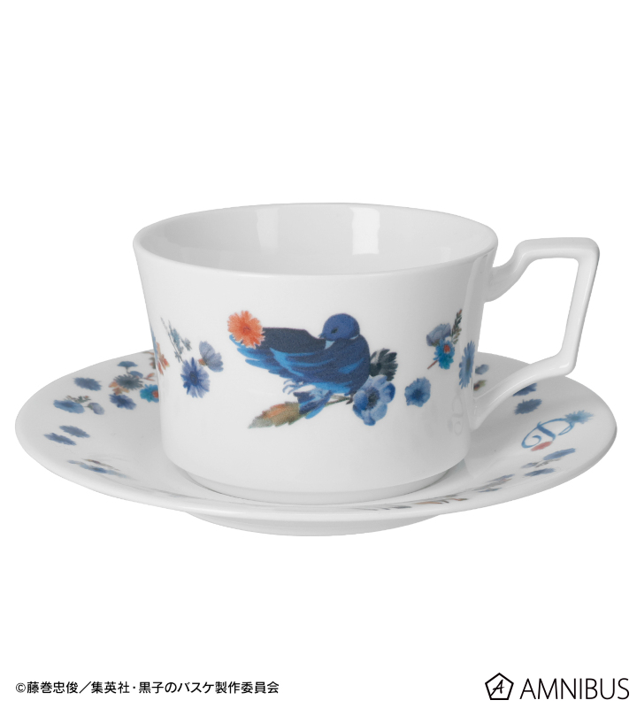 青峰大輝をイメージした鳥と色鮮やかな花が描かれたカップ&ソーサーです。