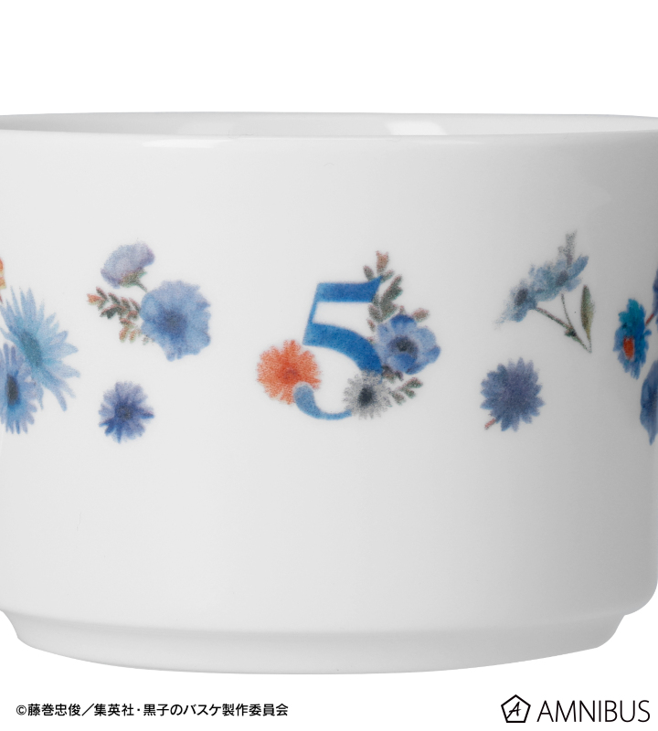 カップ、ソーサー全体にキャラクターカラー、相棒のカラーのお花を散りばめ、カップには背番号である5、ソーサーにはイニシャルである"D"を忍ばせています。