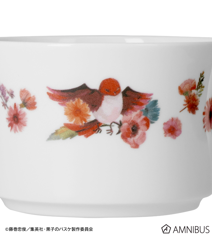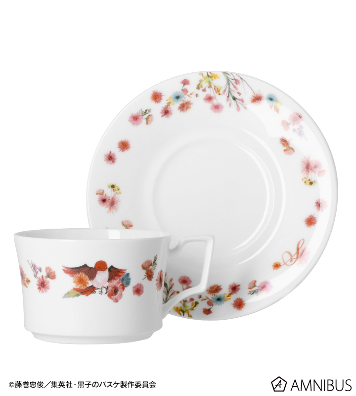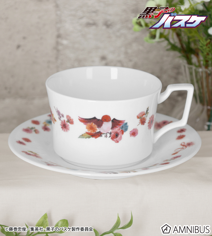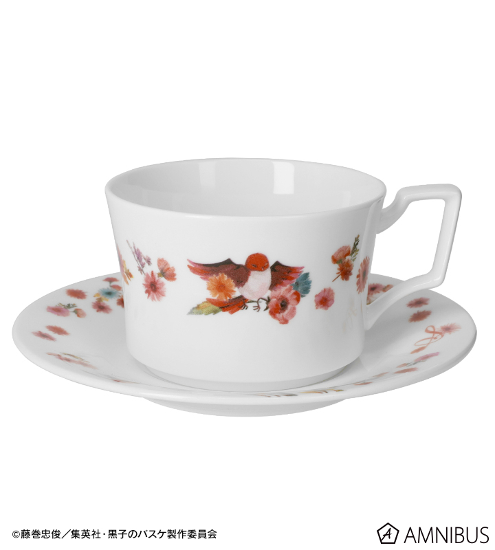赤司征十郎をイメージした鳥と色鮮やかな花が描かれたカップ&ソーサーです。