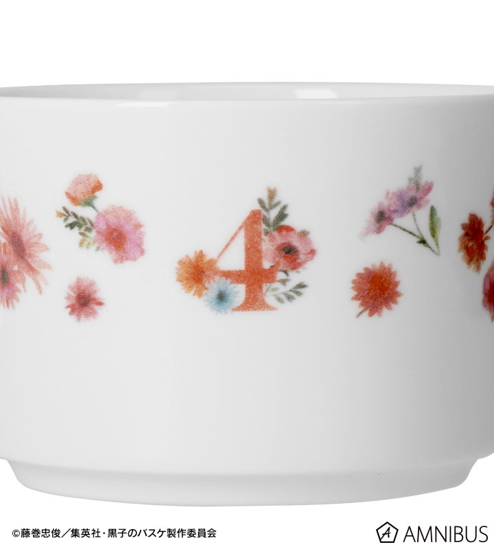 カップ、ソーサー全体にキャラクターカラー、相棒のカラーのお花を散りばめ、カップには背番号である4、ソーサーにはイニシャルである"S"を忍ばせています。