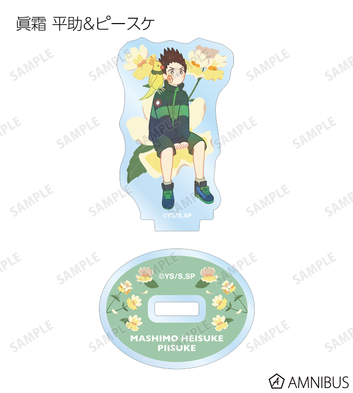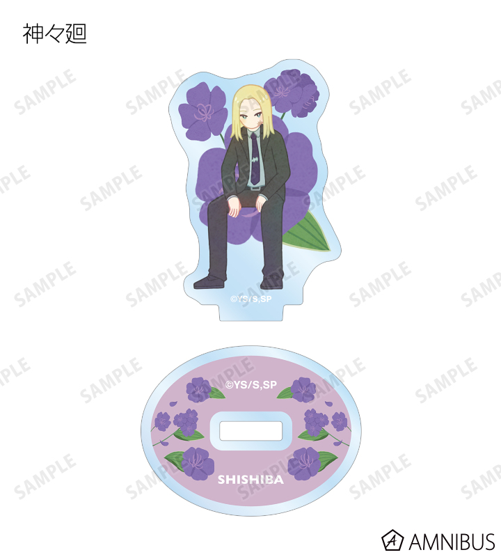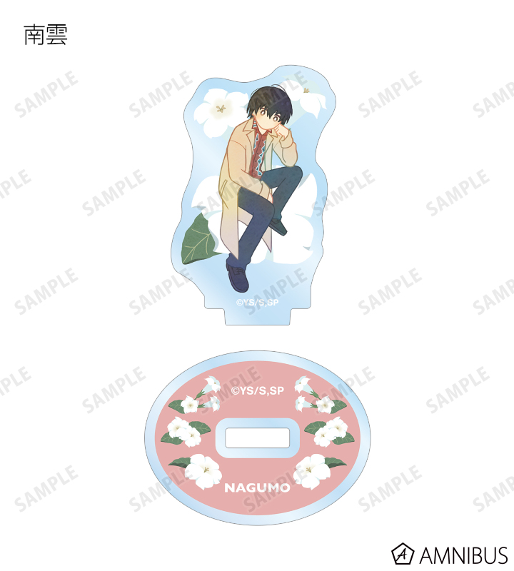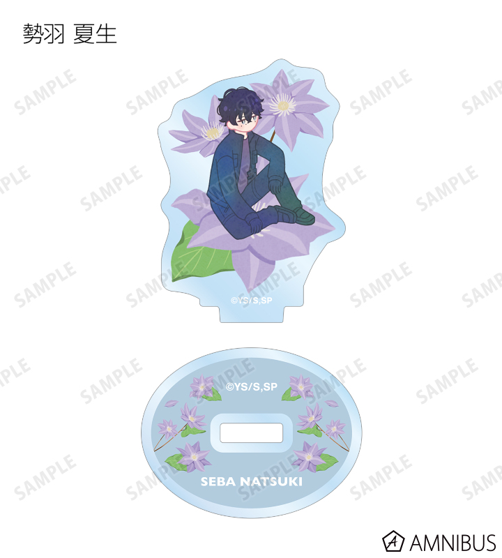 坂本 太郎、朝倉 シン、陸 少糖、眞霜 平助、ピースケ、南雲、神々廻、大佛、勢羽 夏生、陸 無糖のイラストをボタニカルデザインに落とし込んで繊細なタッチで新たに描き起こし、アクリルスタンドに仕上げました。