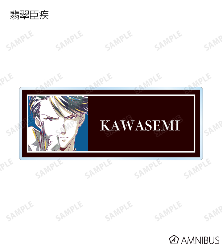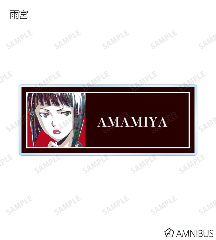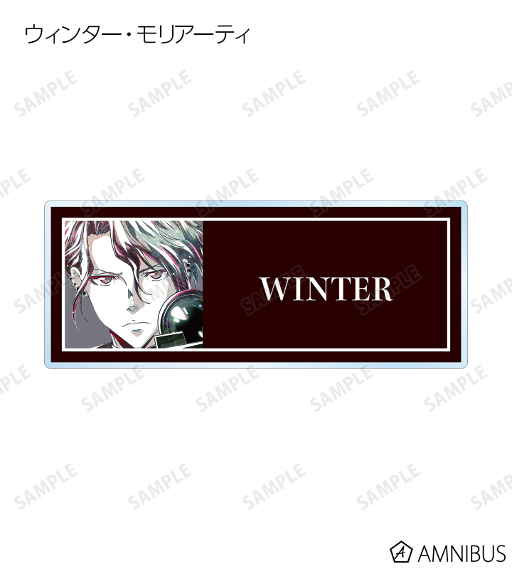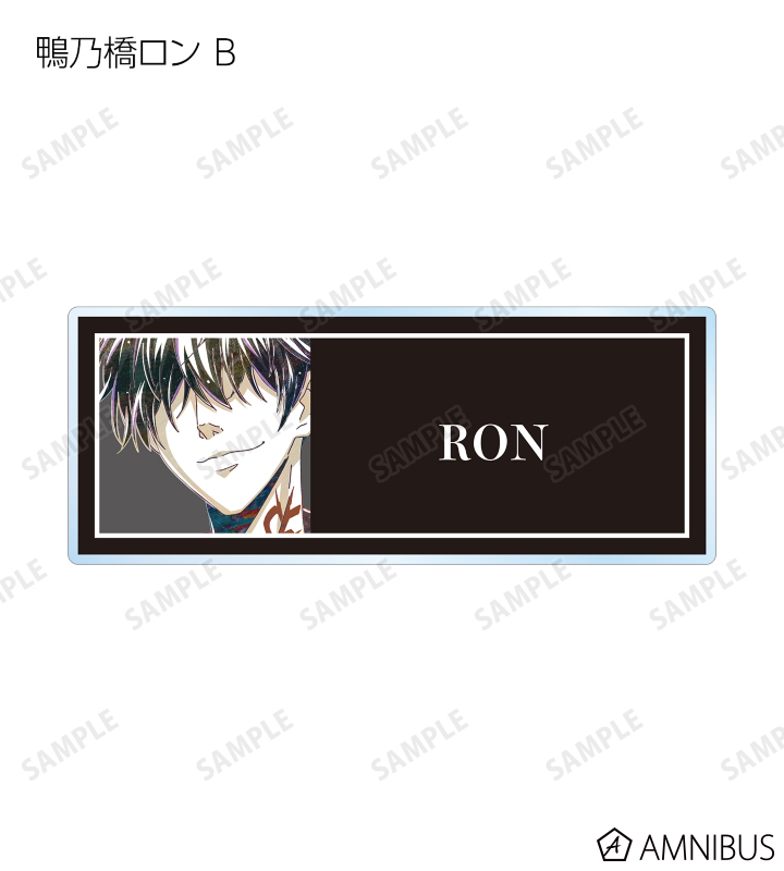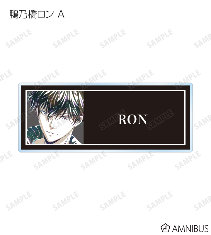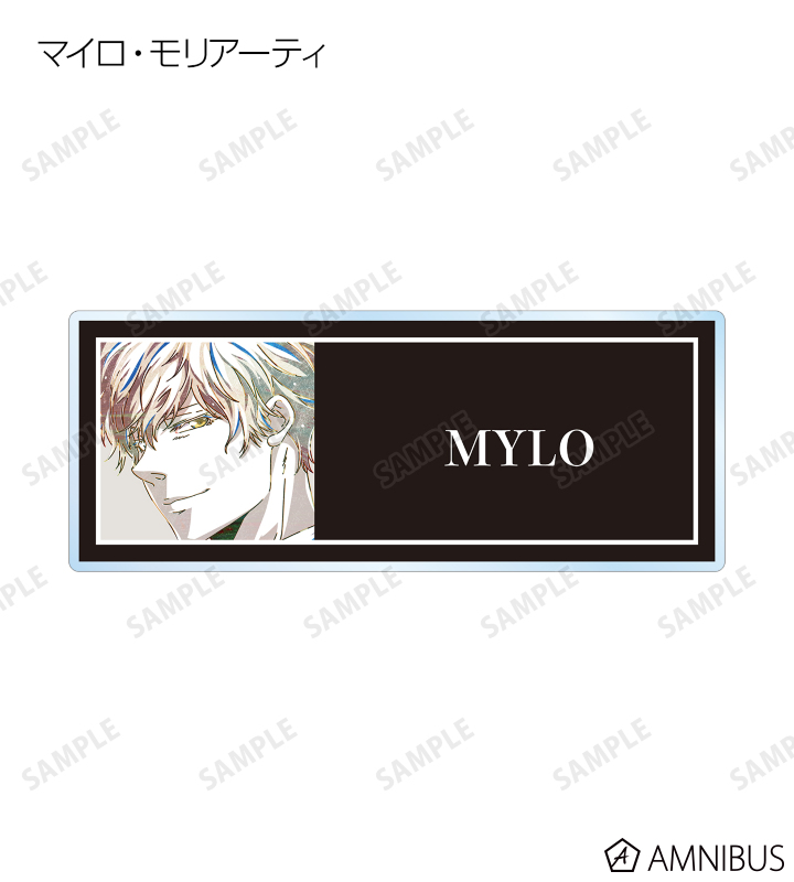 鴨乃橋ロン、一色都々丸、雨宮、シュピッツ・ファイア、翡翠臣疾、マイロ・モリアーティ、ウィンター・モリアーティのイラストを新たなタッチで魅力的に表現し、アクリルネームプレートに仕上げました。