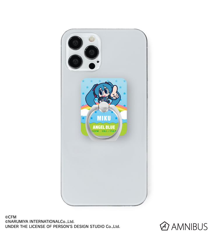 初音ミクを描き起こしたANGEL BLUEのコラボイラストを、アクリルスマホリングに仕上げました。