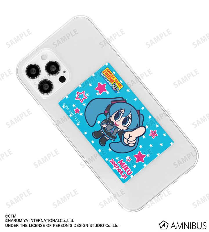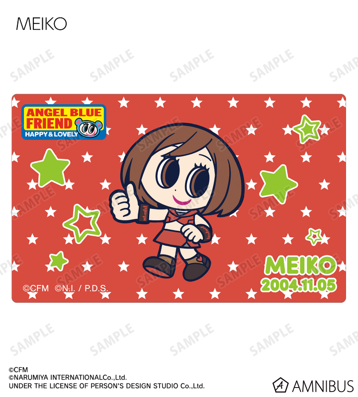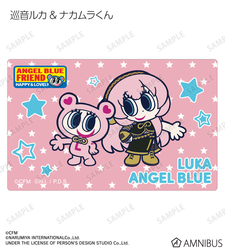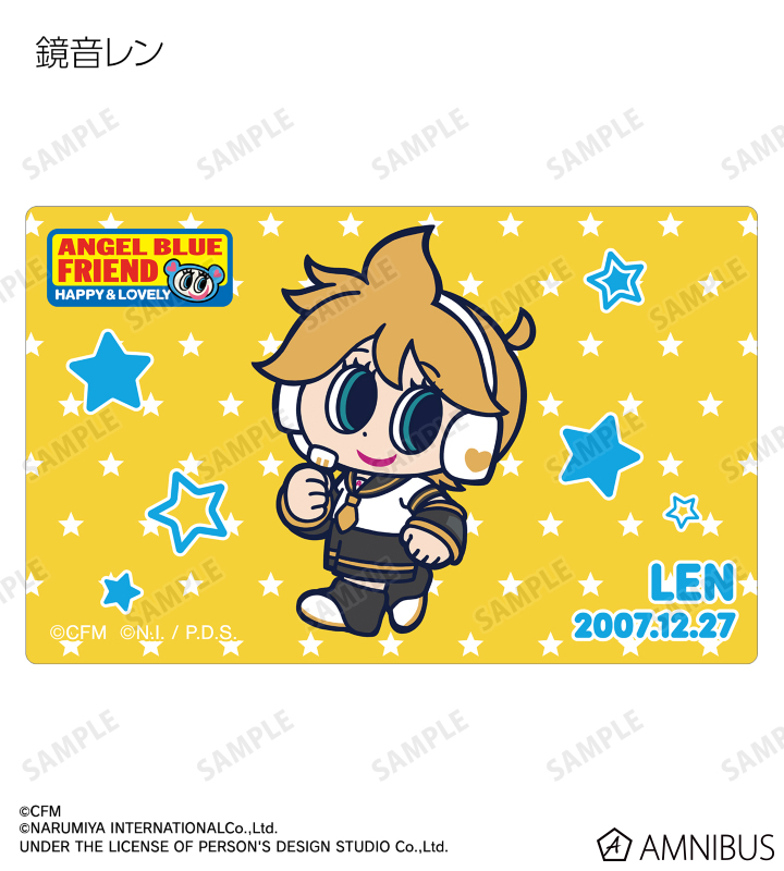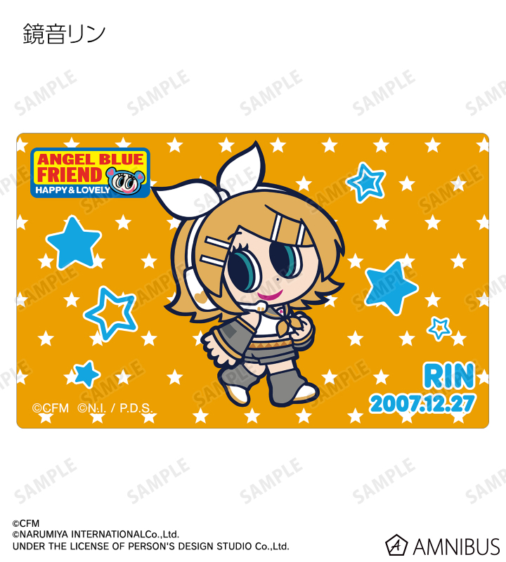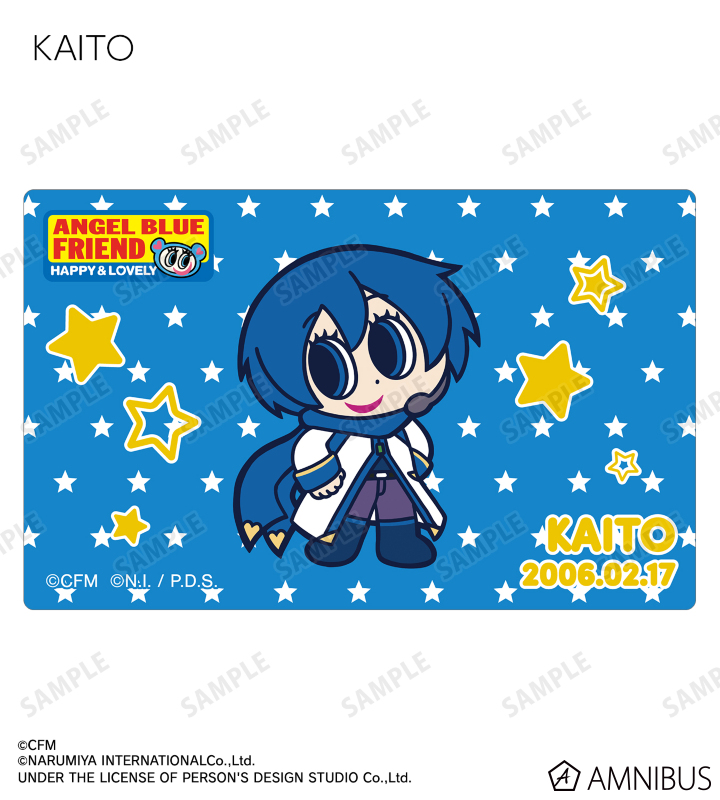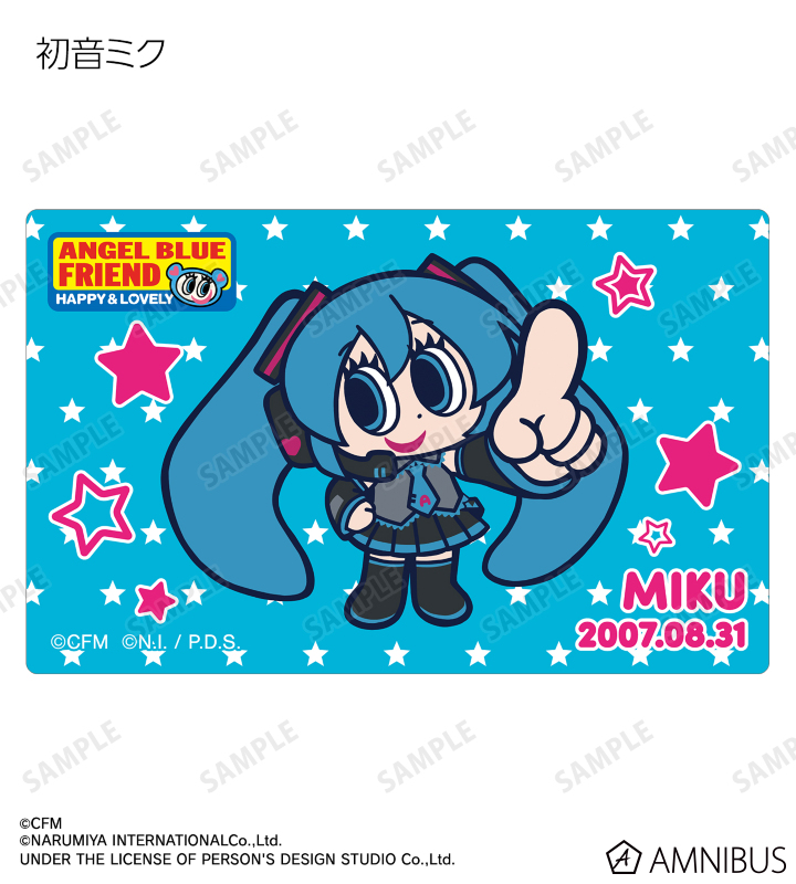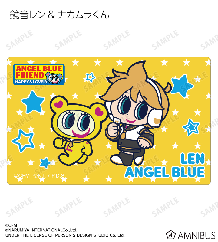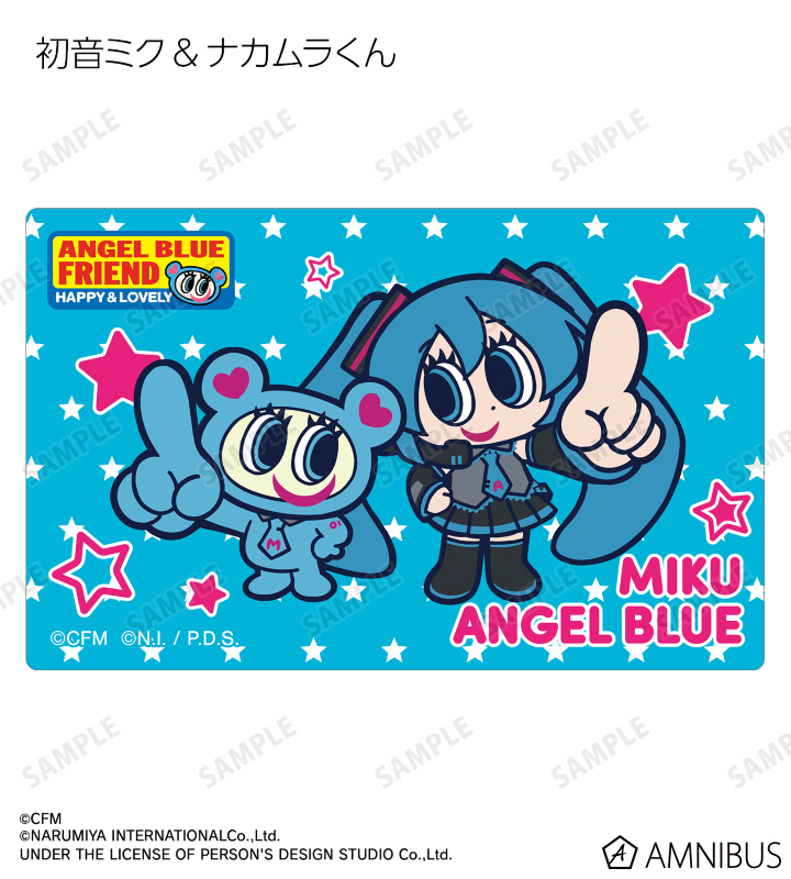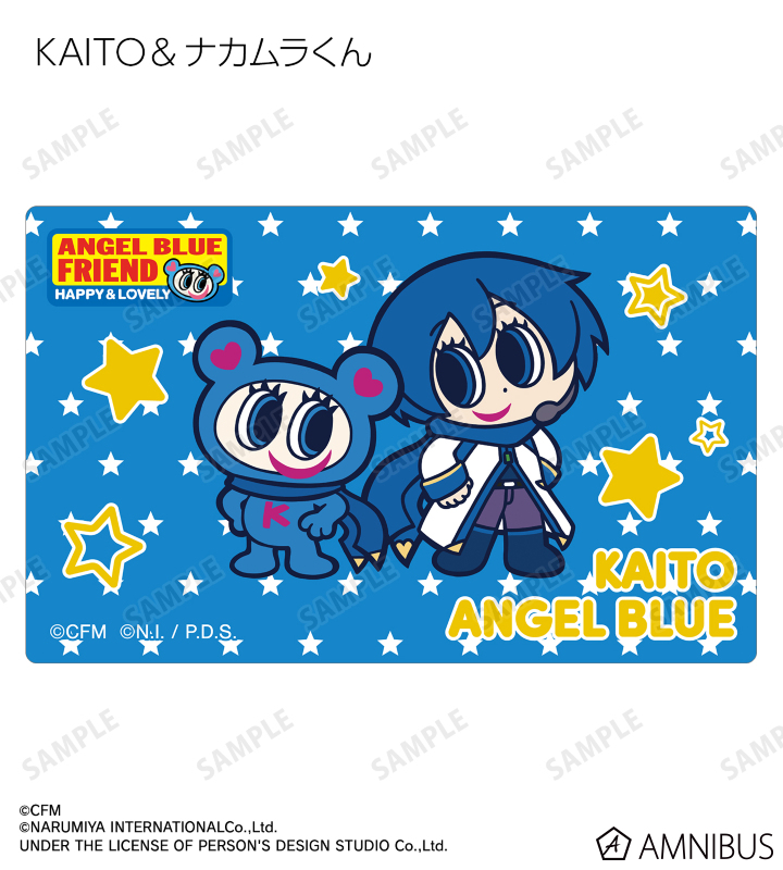 初音ミク、鏡音リン、鏡音レン、巡音ルカ、MEIKO、KAITO、ナカムラくんを描き起こしたANGEL BLUEのコラボイラストを、カードステッカーに仕上げました。