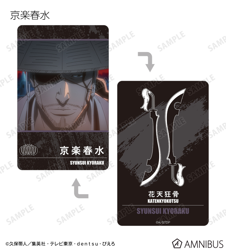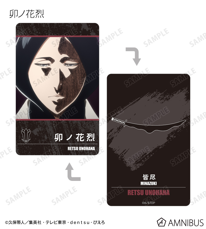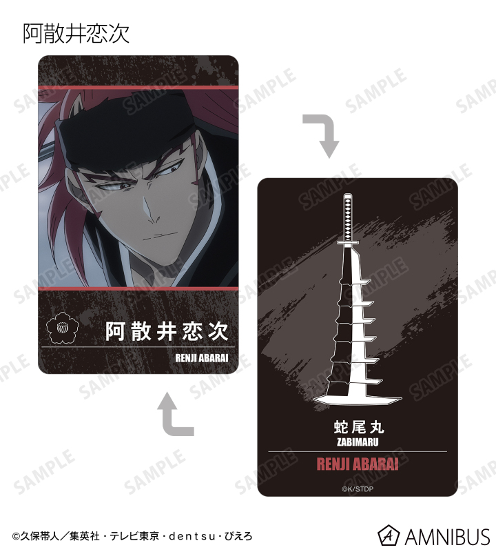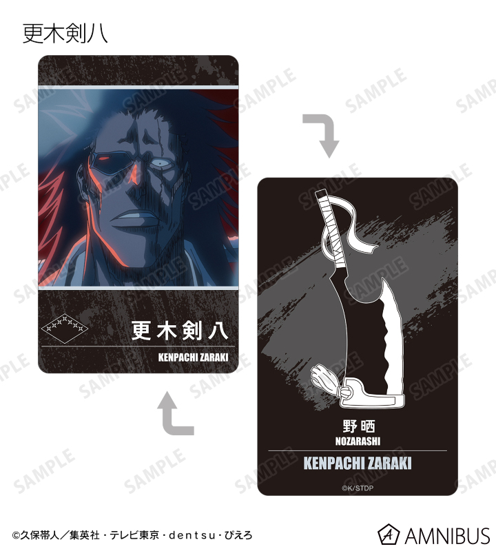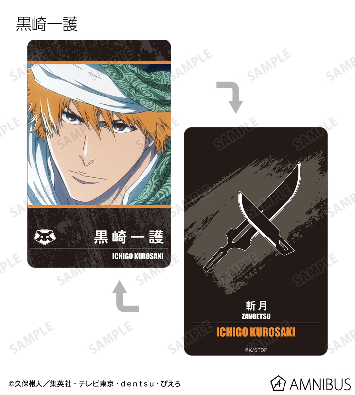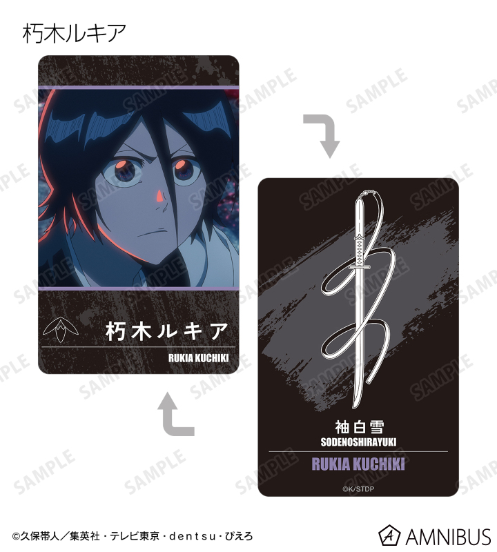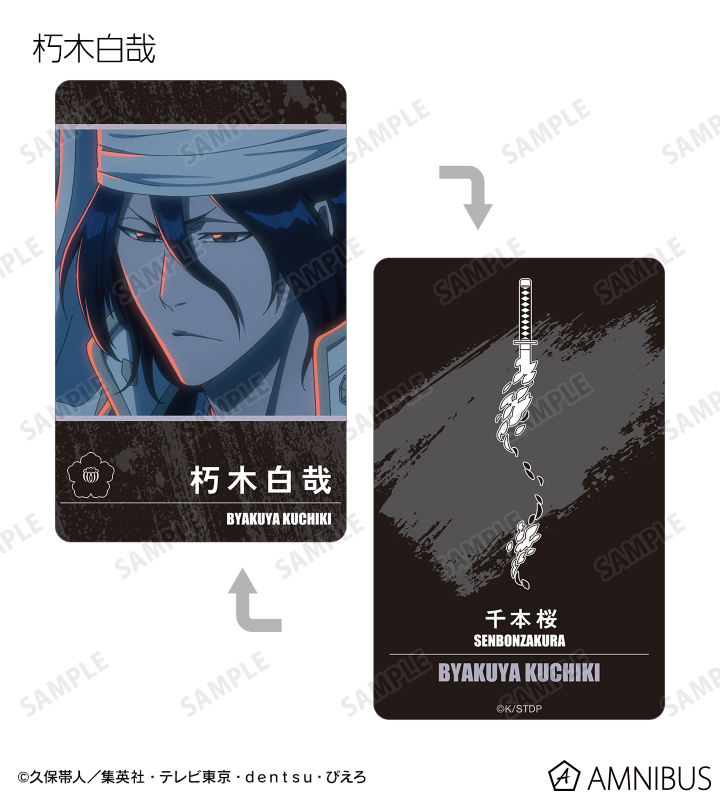 黒崎一護、浦原喜助、京楽春水、平子真子、朽木白哉、阿散井恋次、日番谷冬獅郎、更木剣八、涅マユリ、朽木ルキア、卯ノ花烈の印象的なシーンをプラスチックカードに仕上げました。