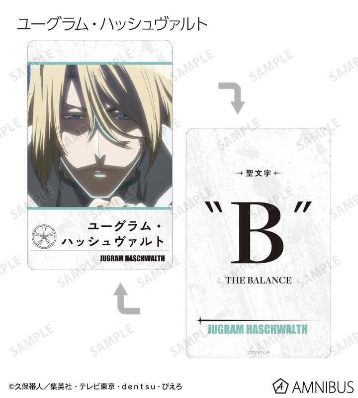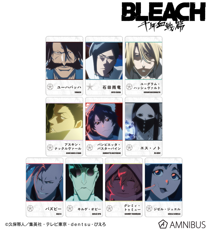 ユーハバッハ、石田雨竜、ユーグラム・ハッシュヴァルト、アスキン・ナックルヴァール、バンビエッタ・バスターバイン、エス・ノト、バズビー、キルゲ・オピー、グレミィ・トゥミュー、ジゼル・ジュエルの印象的なシーンをプラスチックカードに仕上げました。