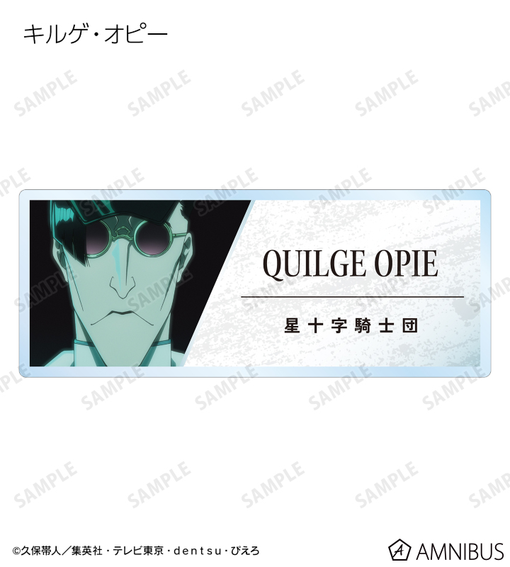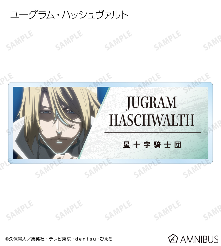 ユーハバッハ、石田雨竜、ユーグラム・ハッシュヴァルト、アスキン・ナックルヴァール、バンビエッタ・バスターバイン、エス・ノト、バズビー、キルゲ・オピー、グレミィ・トゥミュー、ジゼル・ジュエルの印象的なシーンをアクリルネームプレートに仕上げました。