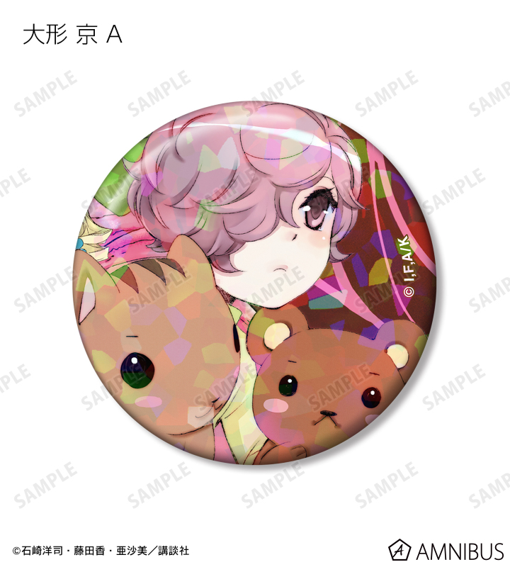 大形 京のイラストを、ホログラム加工を施した缶バッジ3個セットに仕上げました。