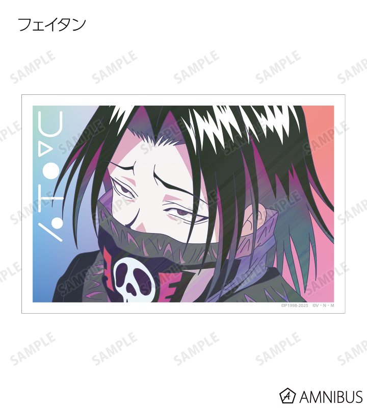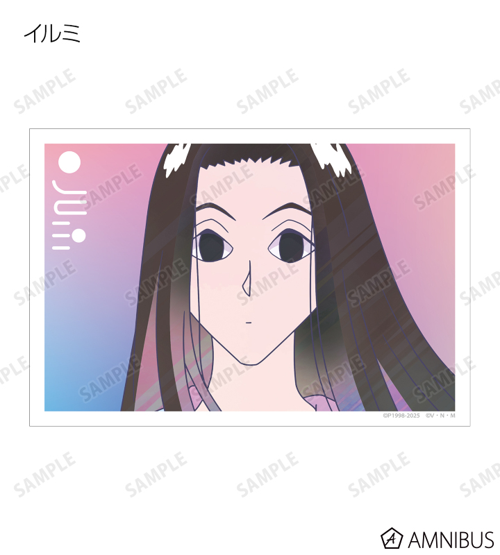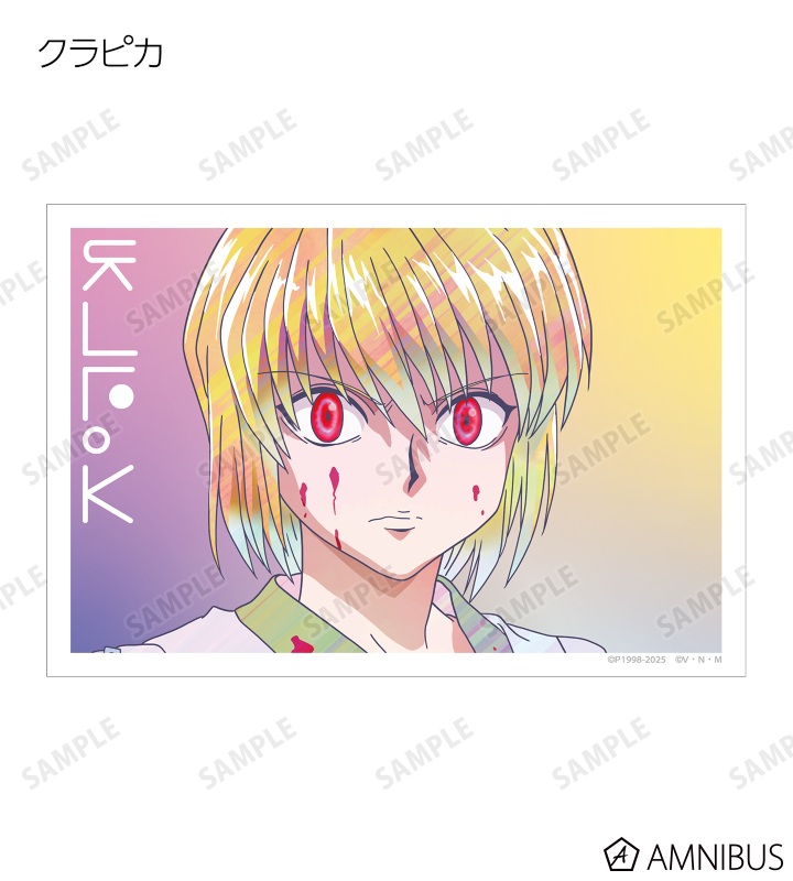 ゴン、キルア、レオリオ、クラピカ、イルミ、ミルキ、カルト、シルバ、ゼノ、センリツ、ネオン、殺し屋、クロロ、ウボォーギン、シズク、ノブナガ、パクノダ、マチ、シャルナーク、フィンクス、フェイタン、フランクリン、コルトピ、ボノレノフ、ヒソカのイラストを新たなタッチで魅力的に表現し、クリアカードに仕上げました。