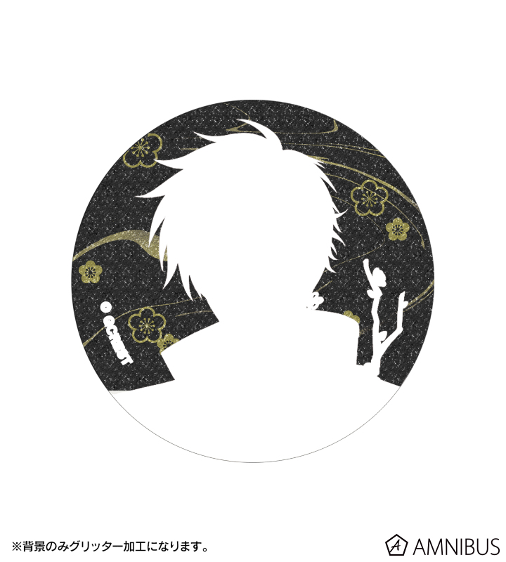イベント「紅き黎明 落ちる花影」の旭のイラストをグリッター加工を施した缶バッジに仕上げました。