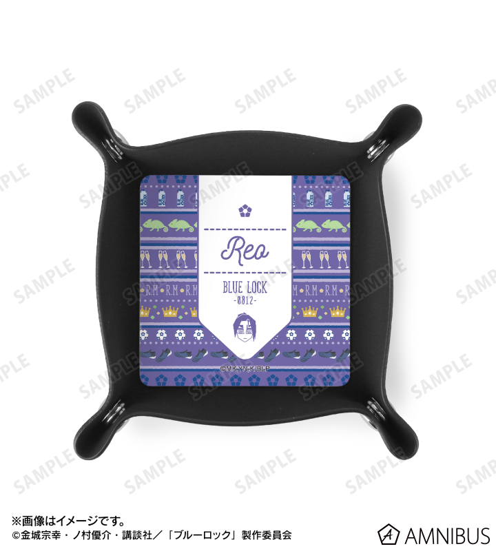御影 玲王のイラスト、イニシャル、誕生日などのキャラクターや作品のモチーフを描き起こし、総柄デザインのPUレザーマルチトレーに仕上げました。