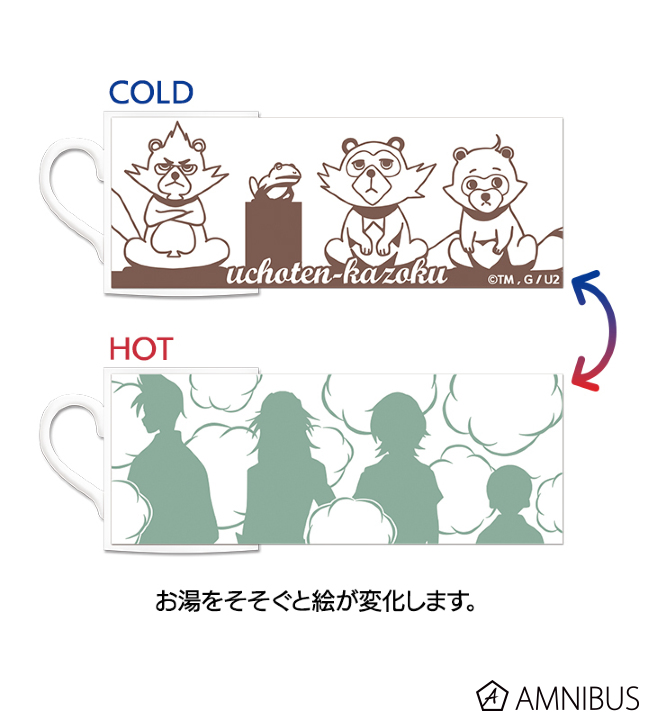 温度に反応する特殊なインク使用しており、マグカップに温かい飲み物を入れると下鴨兄弟が毛玉やカエルから人間に華麗に変化します。