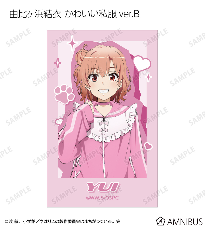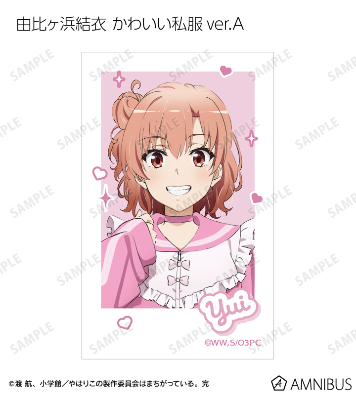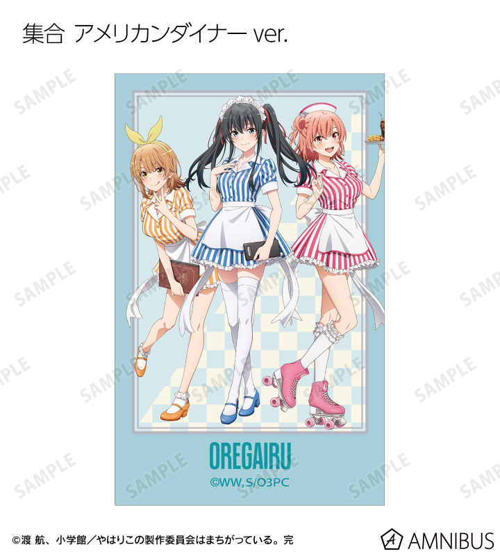 雪ノ下雪乃、由比ヶ浜結衣、一色いろはの「和風メイド」、「アメリカンダイナー」、「かわいい私服」の3種類の描き下ろしイラストを、イラストカードに仕上げました。
