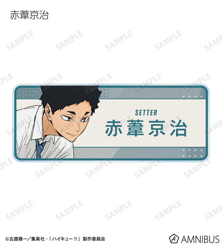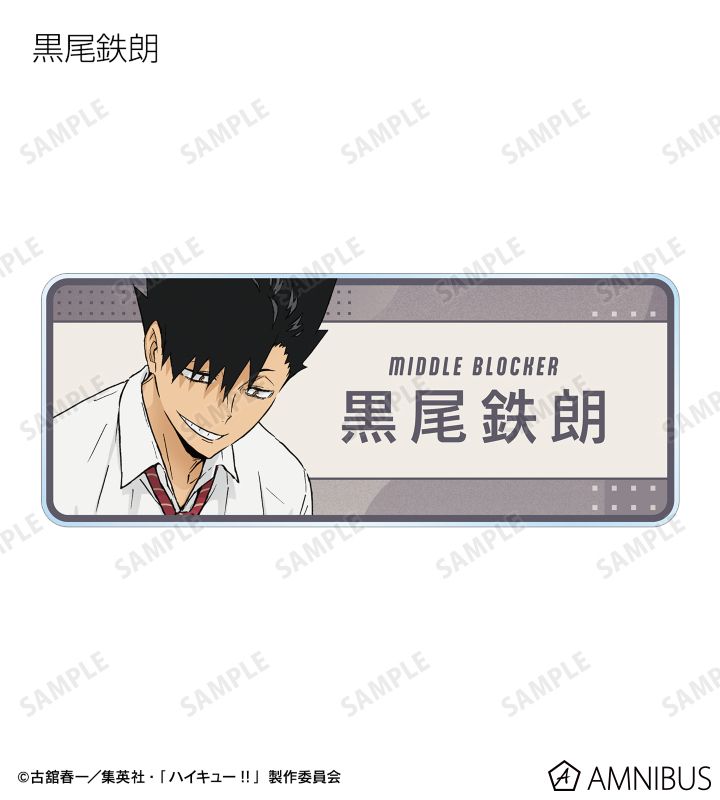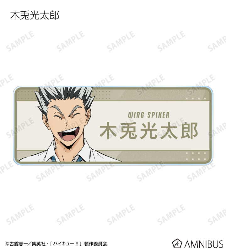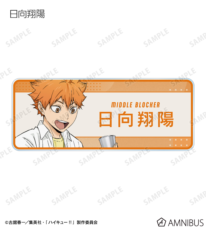 日向翔陽、影山飛雄、月島 蛍、山口 忠、黒尾鉄朗、孤爪研磨、木兎光太郎、赤葦京治の描き下ろしビジュアルをアクリルネームプレートに仕上げました。