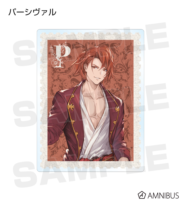 ランスロット、ヴェイン、ジークフリート、パーシヴァル、ヘルエス、レ・フィーエを、切手をイメージしたデザインに仕上げました。