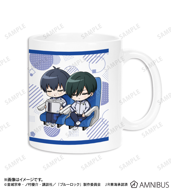 TVアニメ『ブルーロック』×「推し旅/JR東海」のコラボレーションアイテム「潔 世一&糸師 凛 ちびキャラ 新幹線でうたたねver. マグカップ」の登場です。