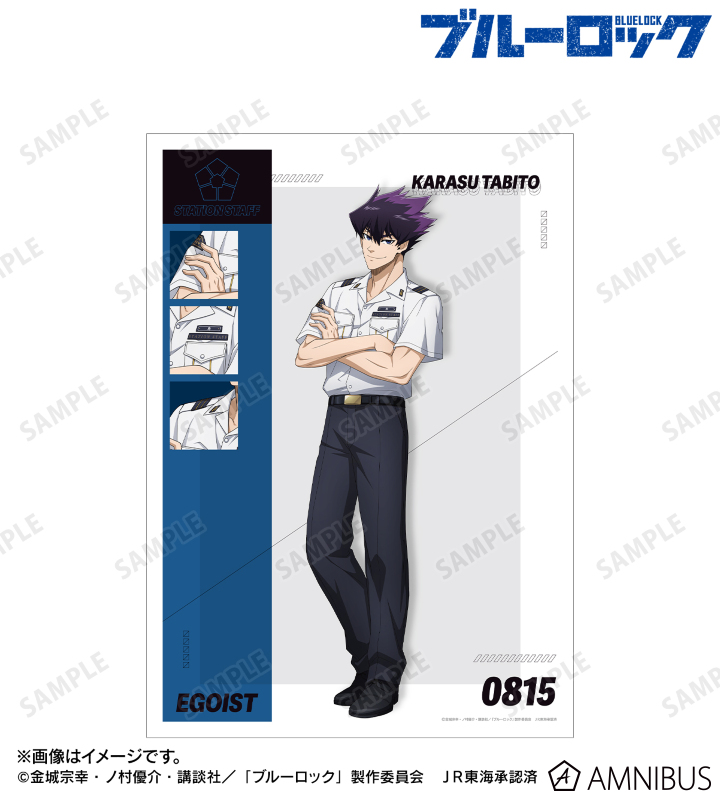 TVアニメ『ブルーロック』×「推し旅/JR東海」のコラボレーションアイテム「描き下ろし 烏 旅人 駅員ver. A3マット加工ポスター」の登場です。