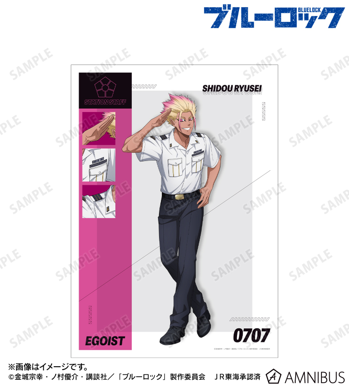 TVアニメ『ブルーロック』×「推し旅/JR東海」のコラボレーションアイテム「描き下ろし 士道 龍聖 駅員ver. A3マット加工ポスター」の登場です。