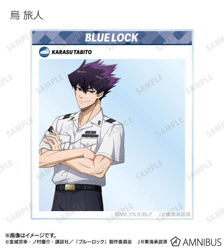 TVアニメ『ブルーロック』×「推し旅/JR東海」のコラボレーションアイテム「描き下ろし 駅員ver. トレーディングSNS風アクリルカード」の登場です。