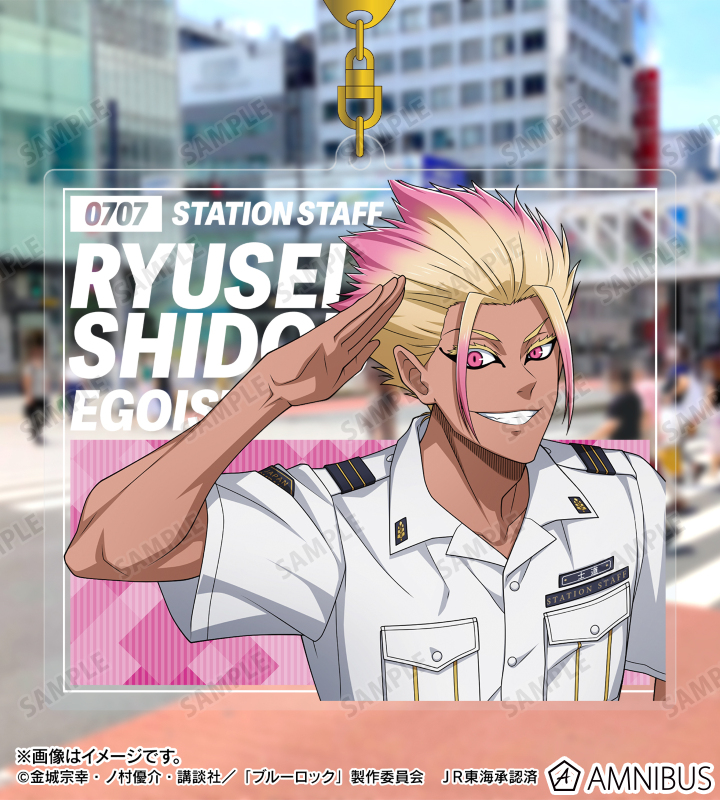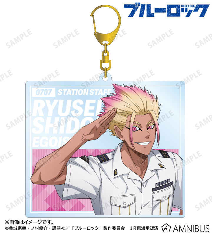 TVアニメ『ブルーロック』×「推し旅/JR東海」のコラボレーションアイテム「描き下ろし 士道 龍聖 駅員ver. BIGアクリルキーホルダー」の登場です。